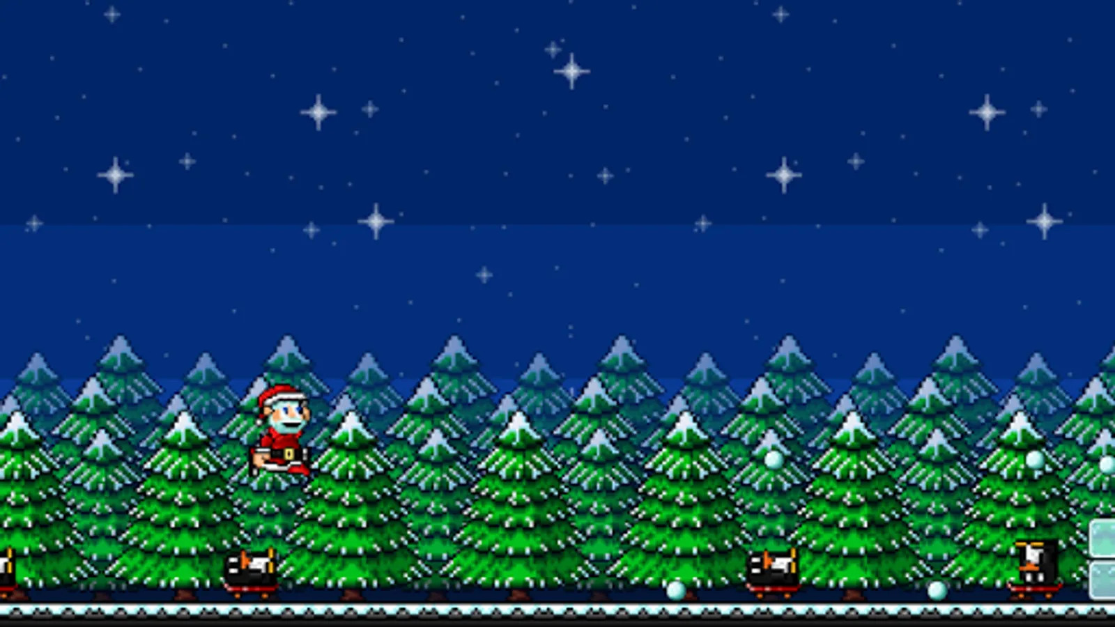 Find your festive cheer as you help Santa traverse the north pole, all rendered in beautifully retro pixel art style. Use jet packs to jump penguins, giant snowballs to level buildings and slow time for those precision jumping sections that will leave you tearing your hair out in festive frustration!