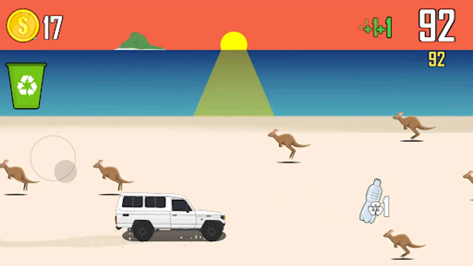 Get ready for the ultimate endless runner experience with DodgeARoo! In this fast-paced game, you'll control your classic four-wheel drive through the beautiful Australian outback. As you dodge kangaroos be sure to recycle bottles in your path to earn some coins - spend them in the Garage to unlock new, iconic vehicles. Download DodgeARoo now and see if you have what it takes to reach Uluru!