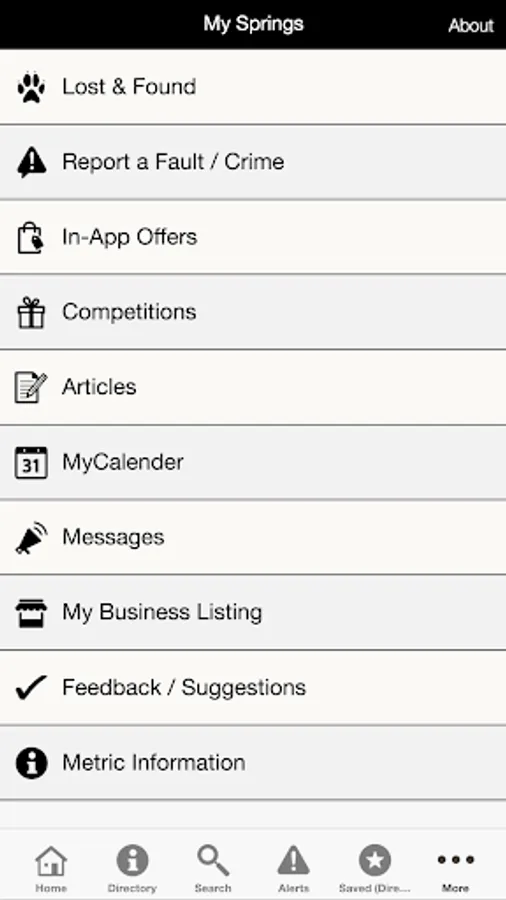 My Springs - Your Friendly Neighbourhood Helper. Have you lost a pet? Do you want to report a crime or burst water pipe? Does your pet need to go to the vet? Are you looking for a local auto repair shop? My Springs is an indispensable reference guide for anyone living or working in Springs. The directory includes contact numbers for local emergency services, businesses, municipality and NPO's. The app encourage residents to buy local, and to use the business directory to find and locate businesses and stores in Springs.