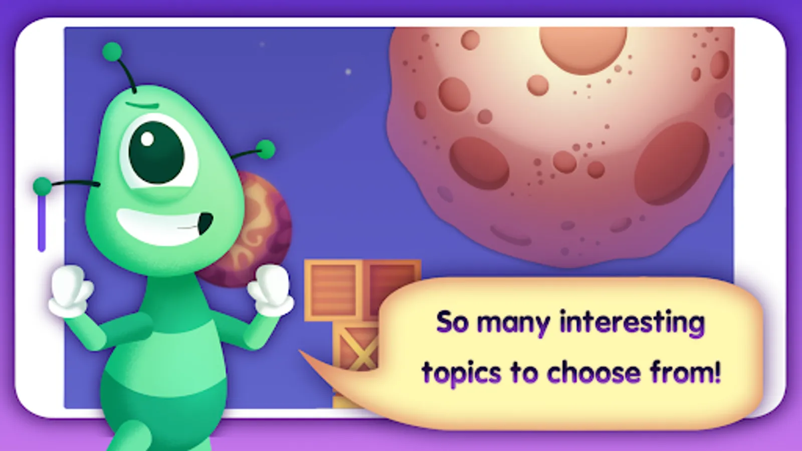 A diverse collection of exciting mini-games for children will keep even the youngest space explorers engaged and explain different surprising phenomenon about our world. From the basic safety rules and to the depths of mysterious space and prehistoric times of dinosaurs – your child will learn about many interesting subjects while playing easy captivating games!