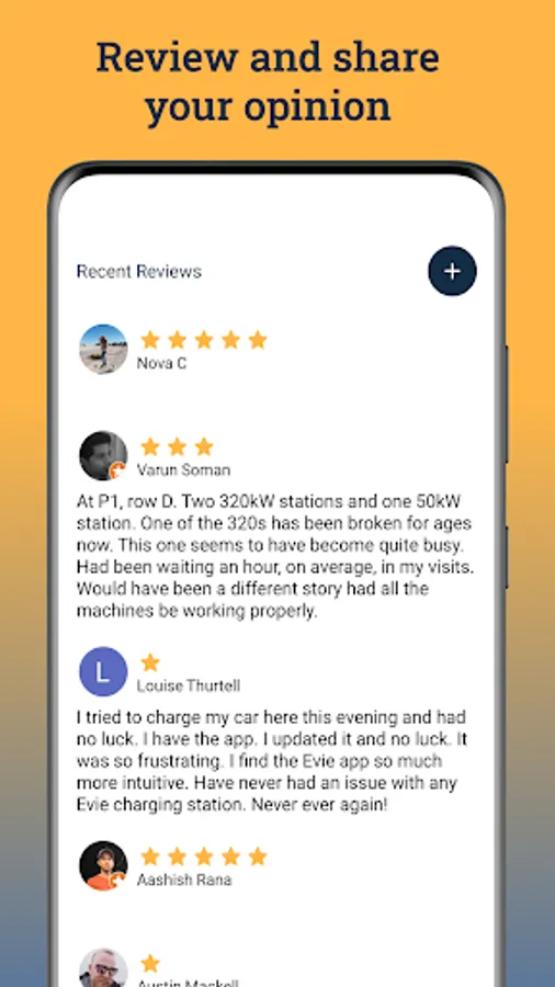- Community: Access and provide user reviews and ratings for each charging station