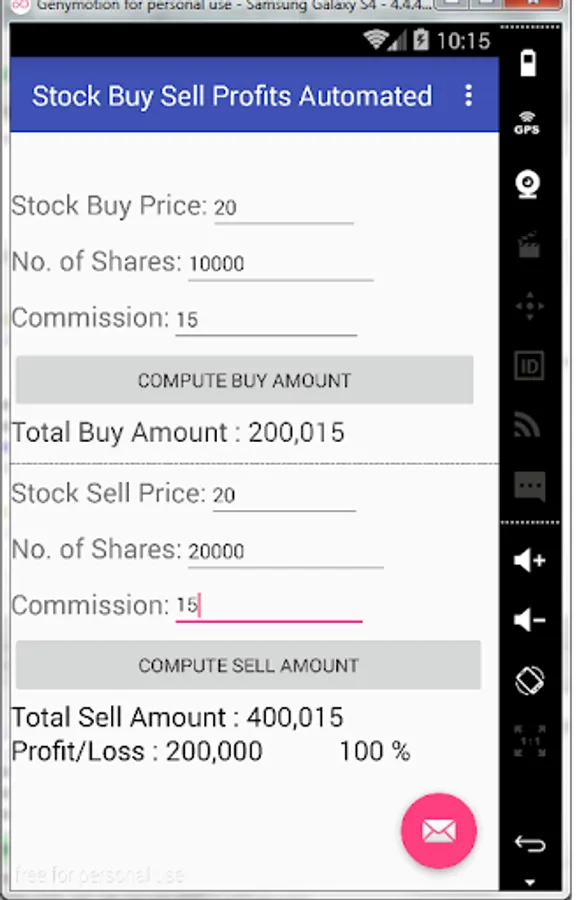 Amount based on Stock Buy Price, Number of Shares and Commission.