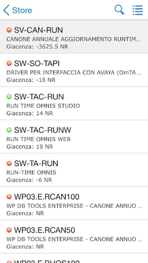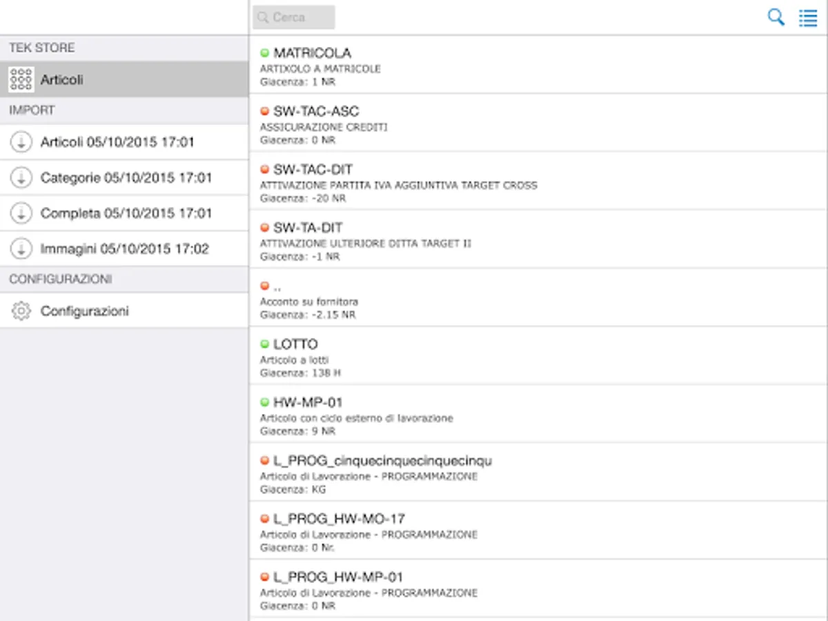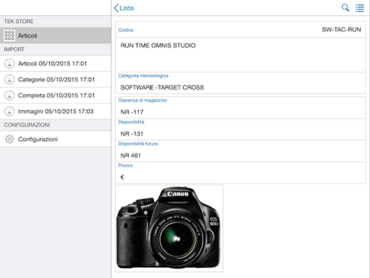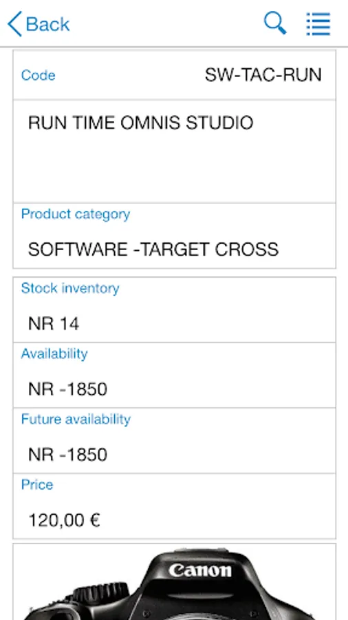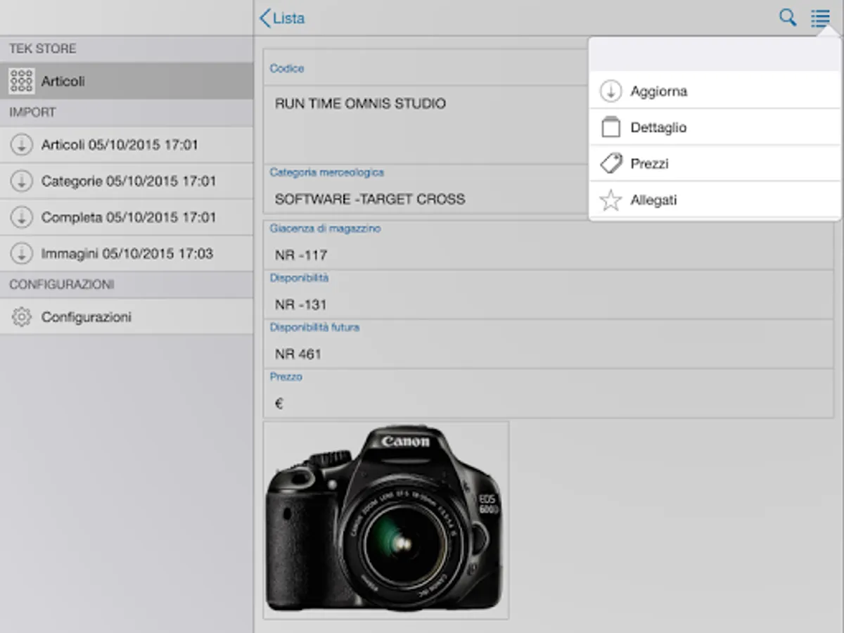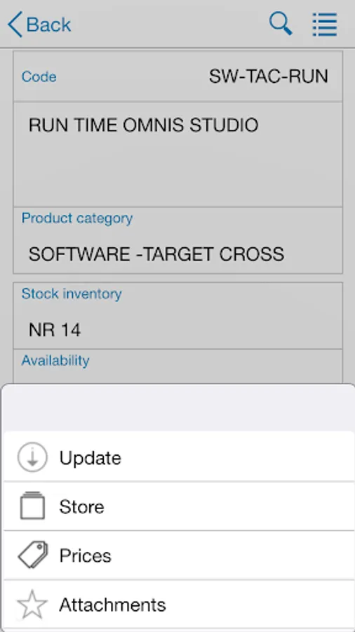 Context menu to access detailed data related to inventory, price lists and attachments (images and files)