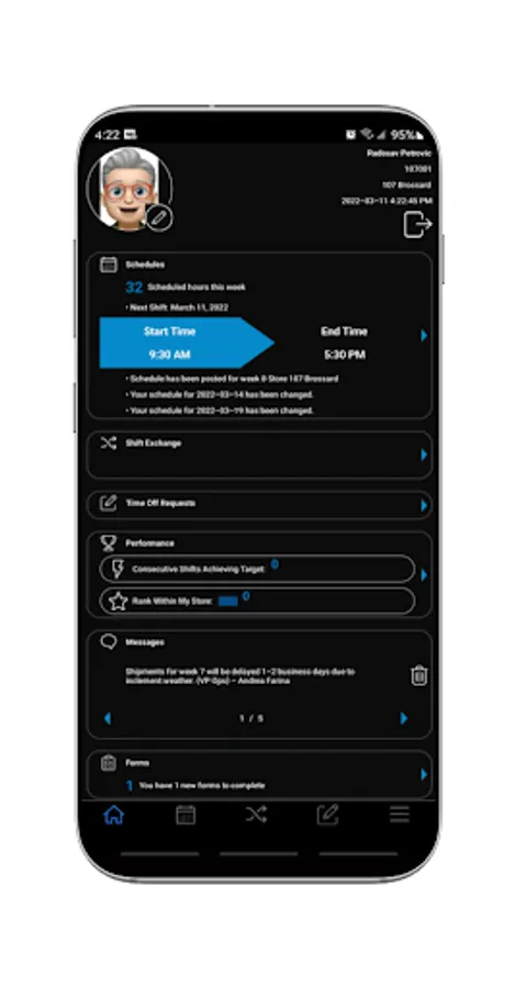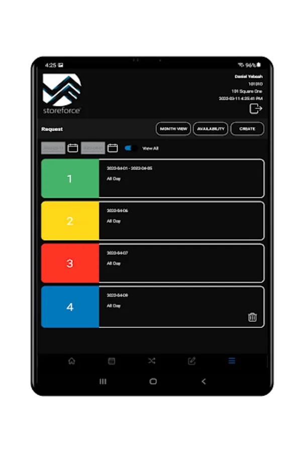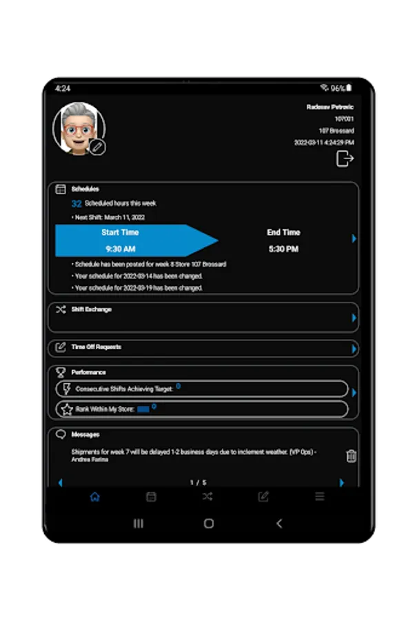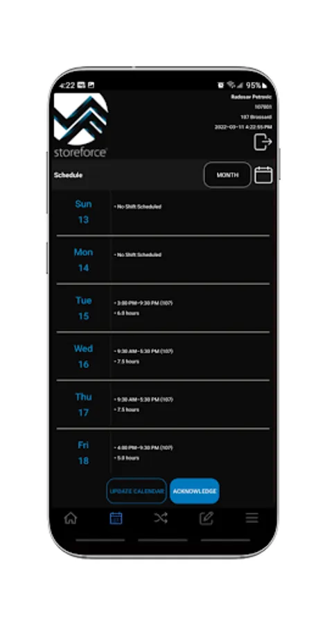 StoreForce ESS App allows employees of StoreForce Retailers to manage their schedules and time off requests, view their performance and receive communication updates. Options available will vary by Retailer.