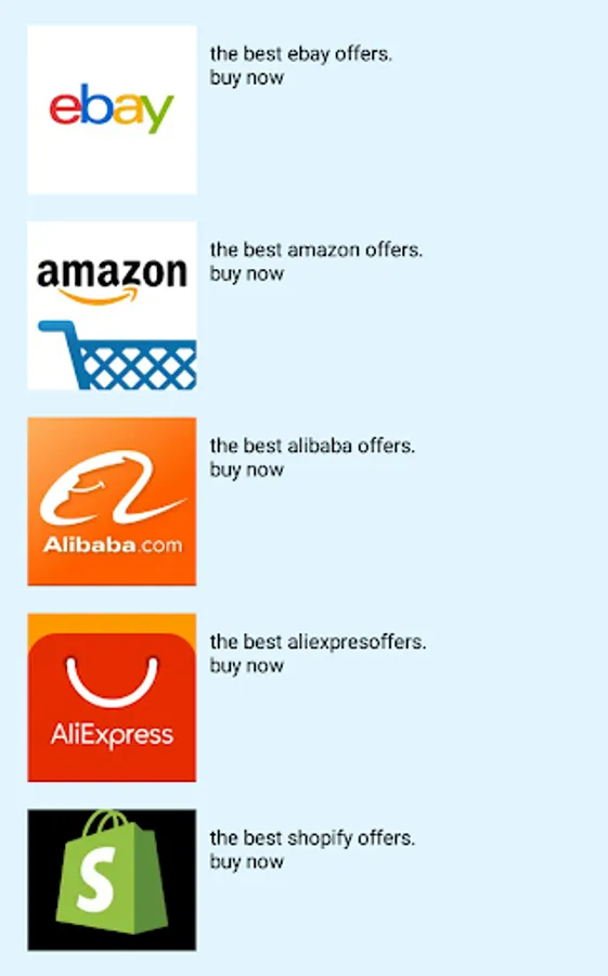 Vender, comprar y ahorrar dinero con eBay, amazon, aliexpres, alibaba shopify. ¡Encuentra ofertas y descuentos en casa y jardín, moda, electrónica, recambios para el coche y mucho más desde tu teléfono móvil!