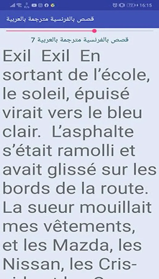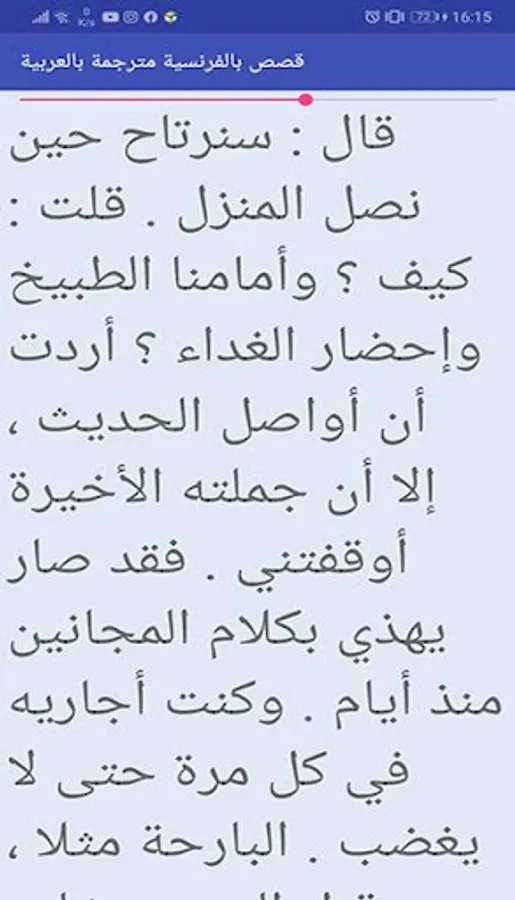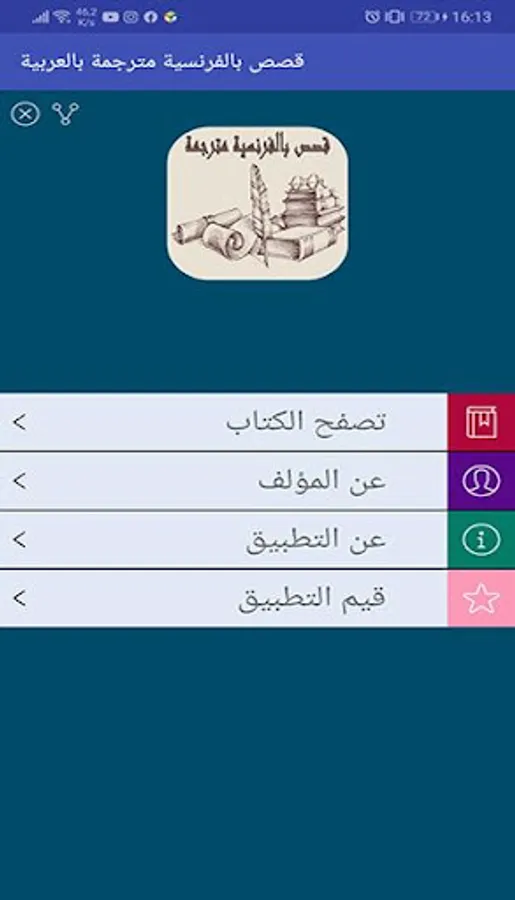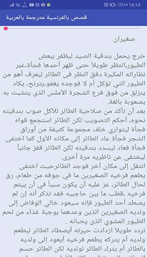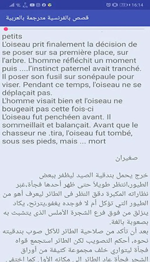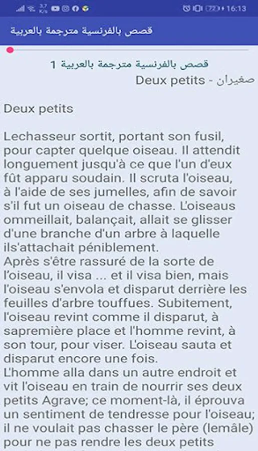 An application that contains stories in French translated into Arabic stating the learning of the French language easily with interest and a lesson taken also with each story.