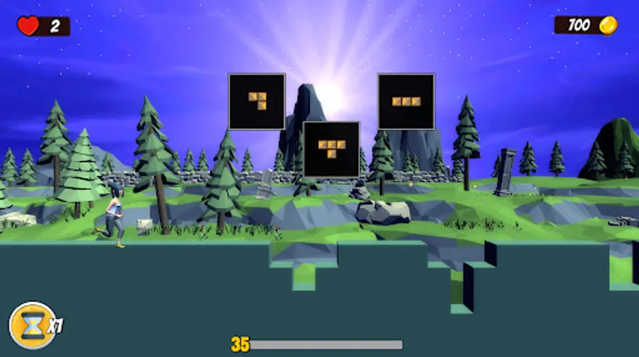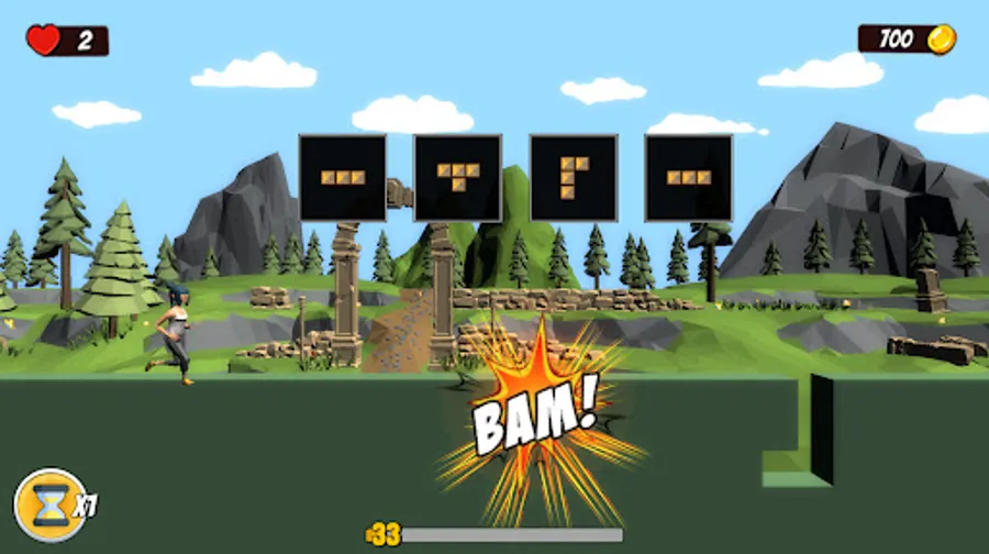 Сюжет простой, но красочный и выполнен в 3D. Персонаж беспрерывно бежит по платформе с отверстиями, в которые быстро и точно необходимо подставлять блоки подходящей конфигурации. Не успеешь - герой упадёт в яму и придётся начинать забег заново. Для усиления драйва фигуры постоянно движутся и меняют свою ориентацию в пространстве. Вот где пригодится скорость реакции и молниеносность мысли!