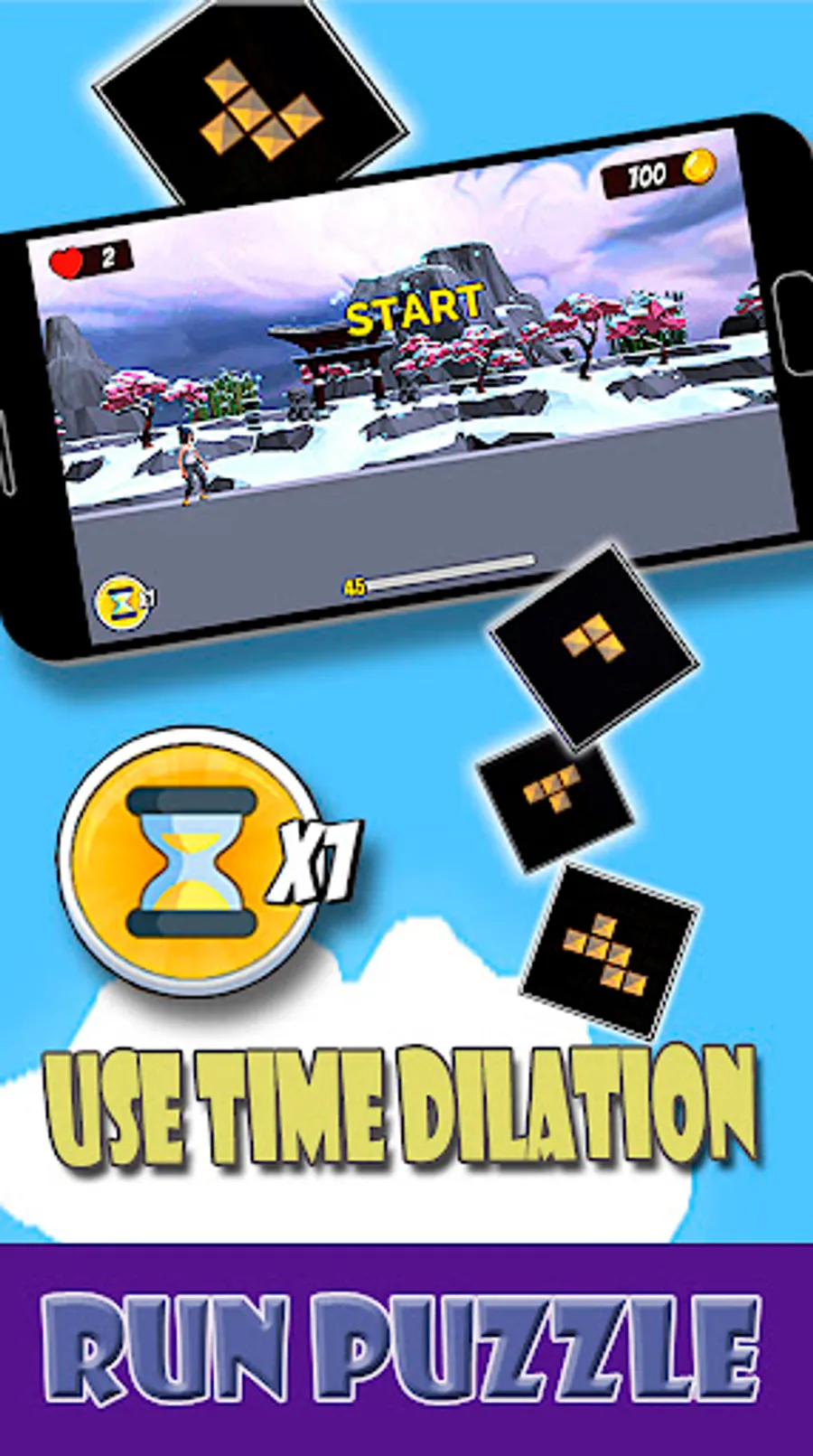 На фоне стандартных arcade и platformer tetris Run Puzzle выгодно выделяется продуманной 3D графикой. Яркие краски и хорошая прорисовка декораций подчёркивает разнообразие пейзажей (пустыня, город, лес, космос), передает ощущение погоды (дождь, метель, солнце) и детализирует время суток (день, ночь). Кстати, без чего не обходится ни один забег? Конечно же, без хорошей музыки. И здесь логическая игра Run Puzzle приятно удивляет авторской музыкой от DJ Andrew Clam, никакой битовой полифонии, только качественная музыка без компромиссов.