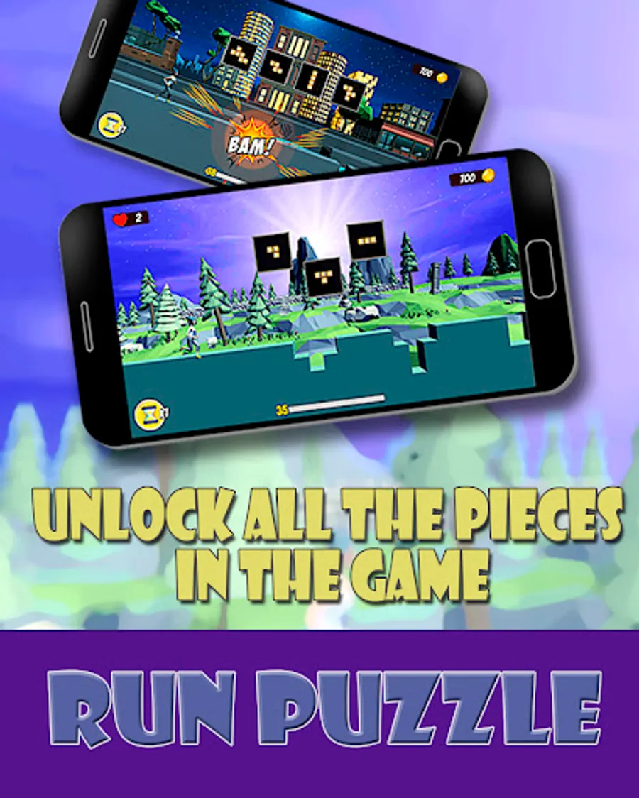 Сегодня на рынке развлечений представлено много казуальных игр. И лидирует среди них жанр игра-головоломка. Каких только нет – и числовые, и буквенные, и визуальные, и логические, и кроссворды, и проволочные. Перечислять и перечислять. Но, пожалуй, самой узнаваемой головоломкой, был и остаётся тетрис. И популярность объяснима, для взрослых это еще тот самый tetris, а для молодёжи это уже сегодняшняя аркада. И Run Puzzle именно такой – игра-головоломка тетрис. Но уже в декорациях экшена - игровой персонаж всё время в забеге, как в классическом раннере, а впереди его поджидают провалы в дороге, как в простом платформере. Вся игра разбита на мини-уровни. Задача каждого уровня, как в любой аркаде – победить. Игра простая и одновременно сложная. Казалось бы, куда уж легче, клади блоки в соответствующие выемки в платформе, а поди попробуй успеть, когда персонаж мчится с бешеной скоростью, фигуры вращаются вокруг собственной оси, скачут вверх-вниз и постоянно появляются новые блоки. Кажущаяся простота весьма обманчива. Не веришь? Тогда тебе никто не помешает скачать головоломку Run Puzzle и лично убедиться, что именно ты пройдёшь её от начала до конца! Кстати, Run Puzzle работает оффлайн, играть можно без интернета! И что важно, абсолютно бесплатно!