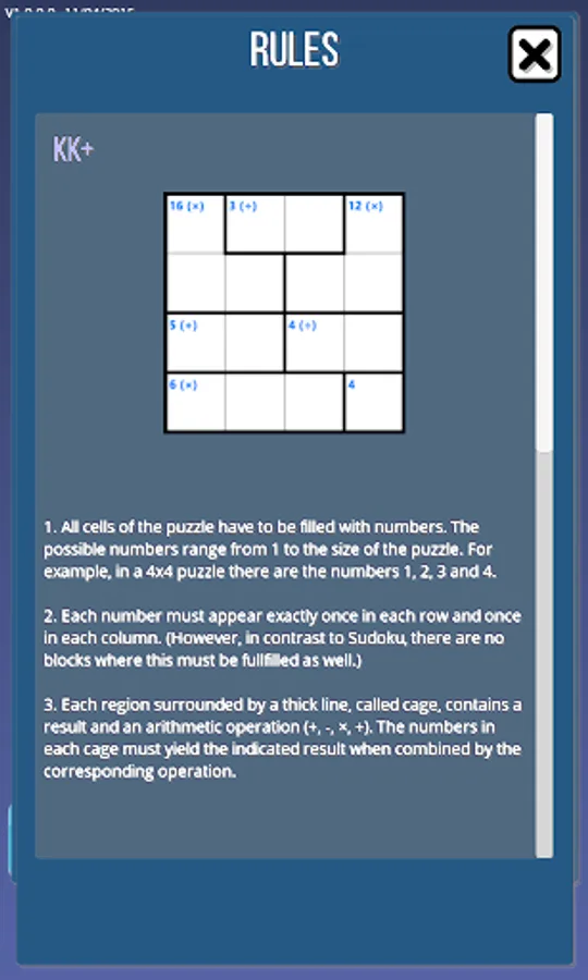 KK+ combines Sudoku with math. The result is a unique and addictive puzzle experience. KK+ is also a very good exercise for your brain. The game is based on KenKen(tm).