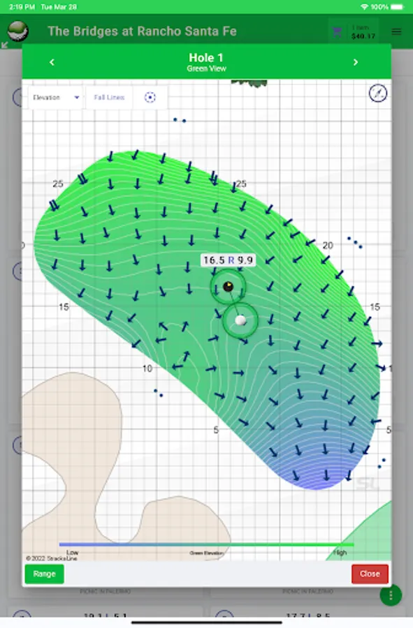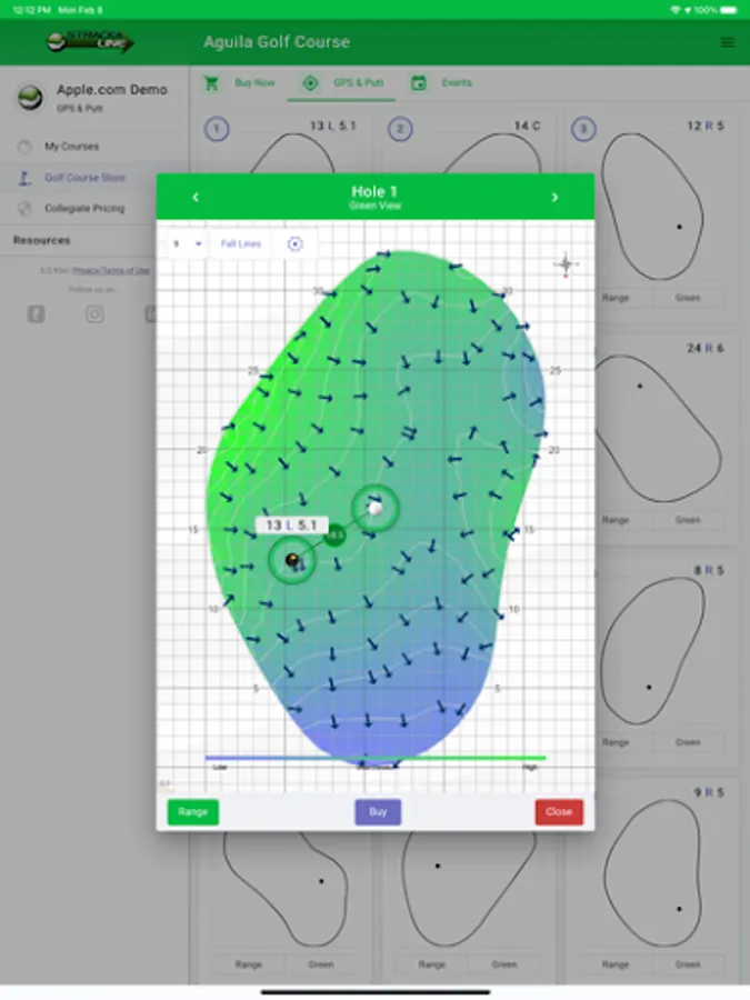 ● Make Putt and View Fall Lines for any hole location