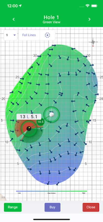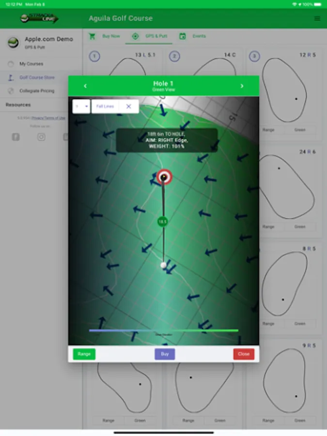 It displays an interactive topography map for each green we've scanned. You can zoom in and out to see the contours and slope percentages, adjust the grid, view a spinning 3D animation, and even calculate your exact putt line (StrackaLine) by setting the hole location and your ball location. Just like a video game, but the information is real!