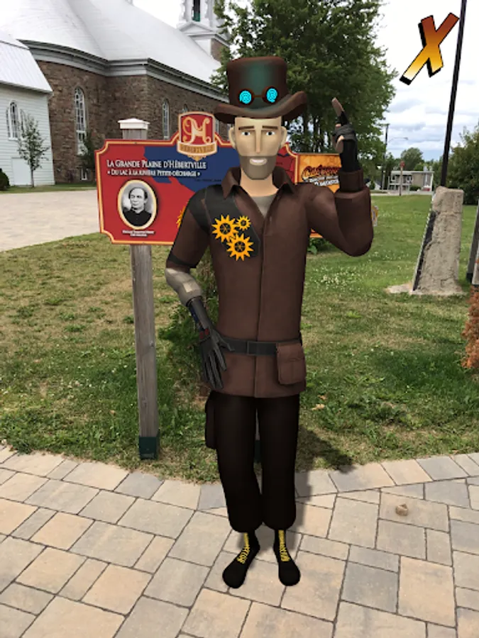 This application allows visitors to appear in 3D and this, in the real environment, a traveler time. The latter, called Cléophas, tells the story of Héberville, the first municipality of Lac-Saint-Jean to have seen the light of day.