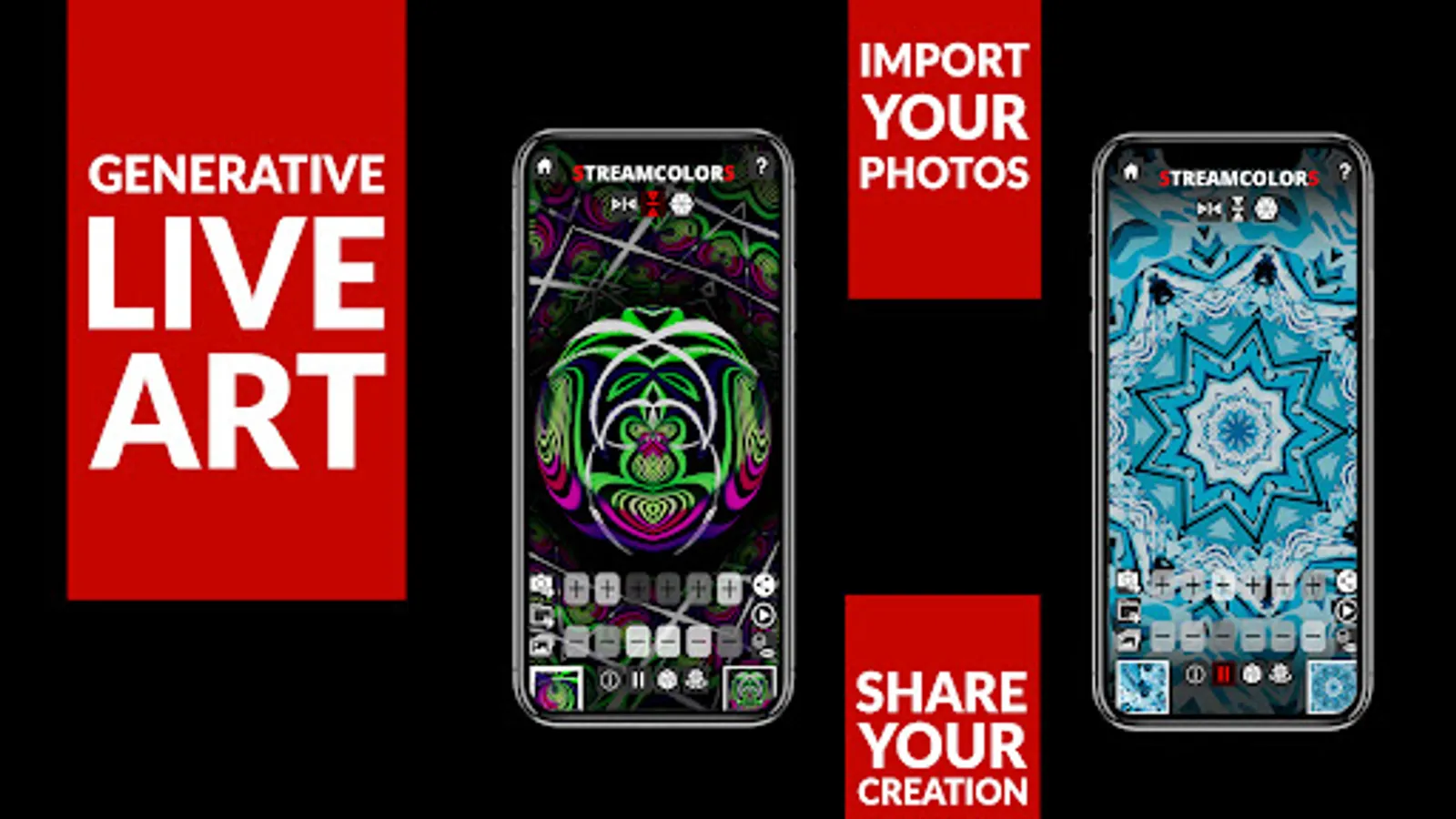 Download the Streamcolors app to create, buy and share unique patterns of generative art starting from photos.