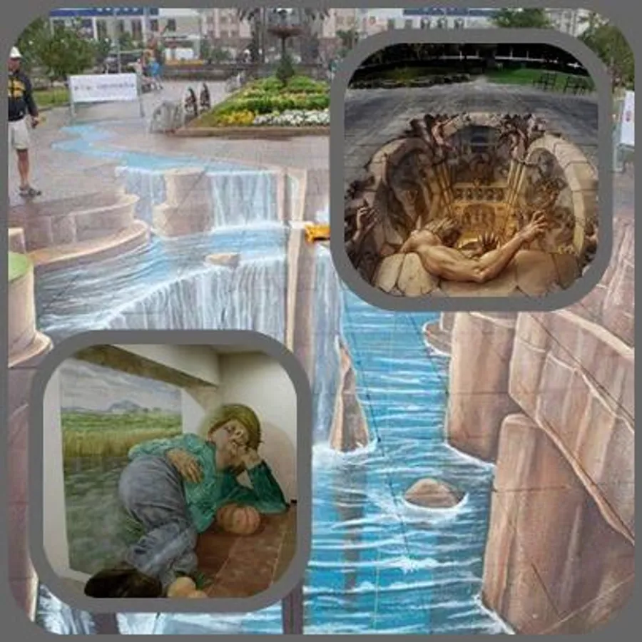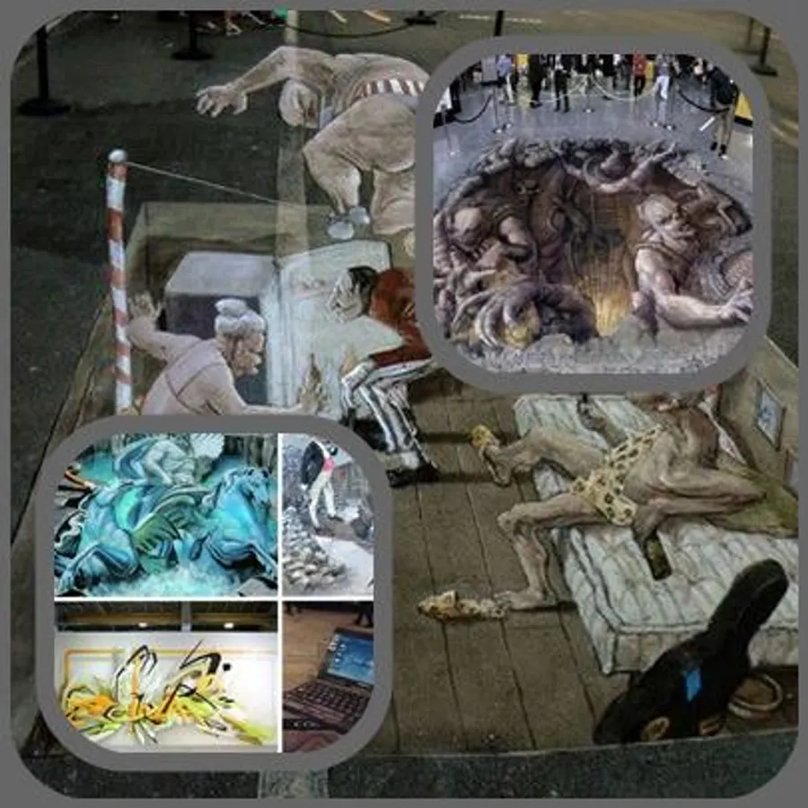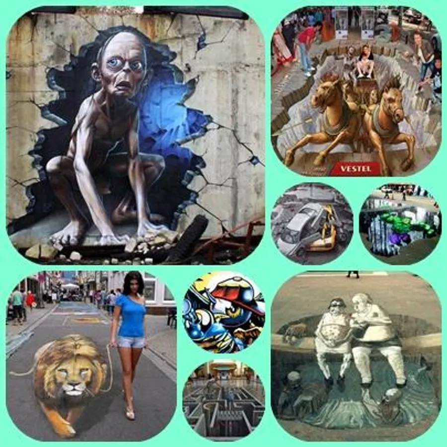 3D street art painting is two dimensional artwork drawn on the street that gives you a three dimensional optical illusion from a certain perspective. Street art painting can be mind-blowing, realistic and at the same time captivating once you see from the right angle. 3D painting art and graffiti is challenging if you manage to create them, as you are creating a realistic 3d view out of a 2d painting.