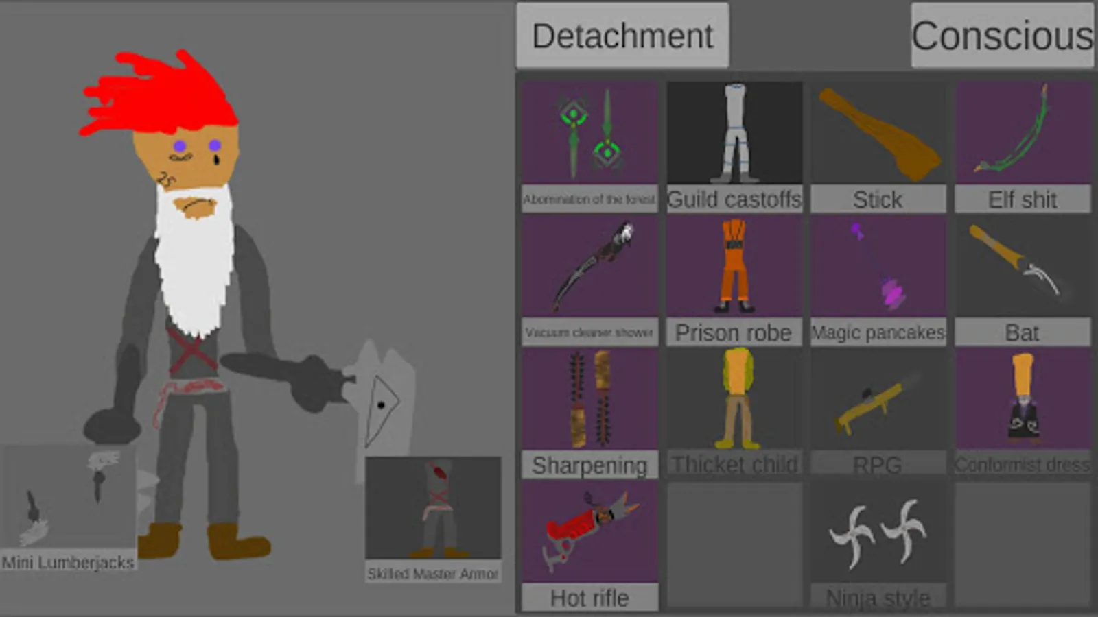 Numerous sets of weapons and armor. There are no restrictions, fashion or any significance in appearance. Dress like a criminal, a homeless person, an attractive and hot guy or a boring elf.