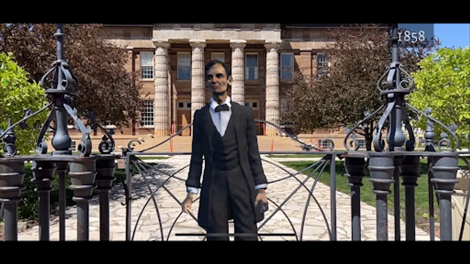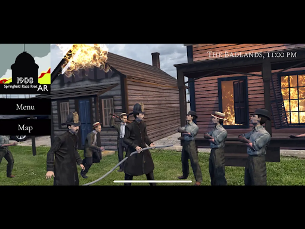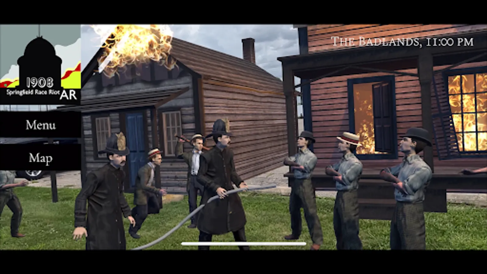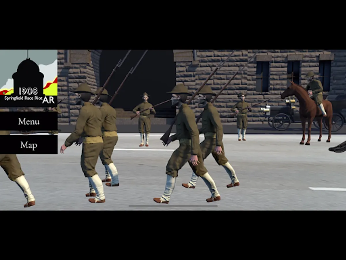 1908 Race Riot AR is an Augmented Reality-based mobile app that presents the 1908 Springfield, Illinois Race Riot, a horrific episode of racial violence perpetrated against African Americans in the Capitol of the State of Illinois which led to the founding of the NAACP. The app provides visitors with the ability to follow a self-guided tour of downtown Springfield, Illinois that presents the event and how it unfolded over three days. The app is centered around a GPS-based map that guides visitors to nine numbered AR stop locations. Each AR stop represents a place of significance where users are able to view animated AR recreations of events that took place. These animated AR recreations are viewed as overlays on the real present day landscape. The app was made possible by the US National Park Service’s Abraham Lincoln Home and the organization Looking for Lincoln.