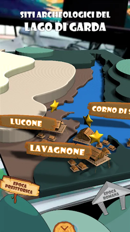 Palafittopoli is an App in support of a guidebookfor kids that helps them to discover the Archaeologic Museum of Desenzano.