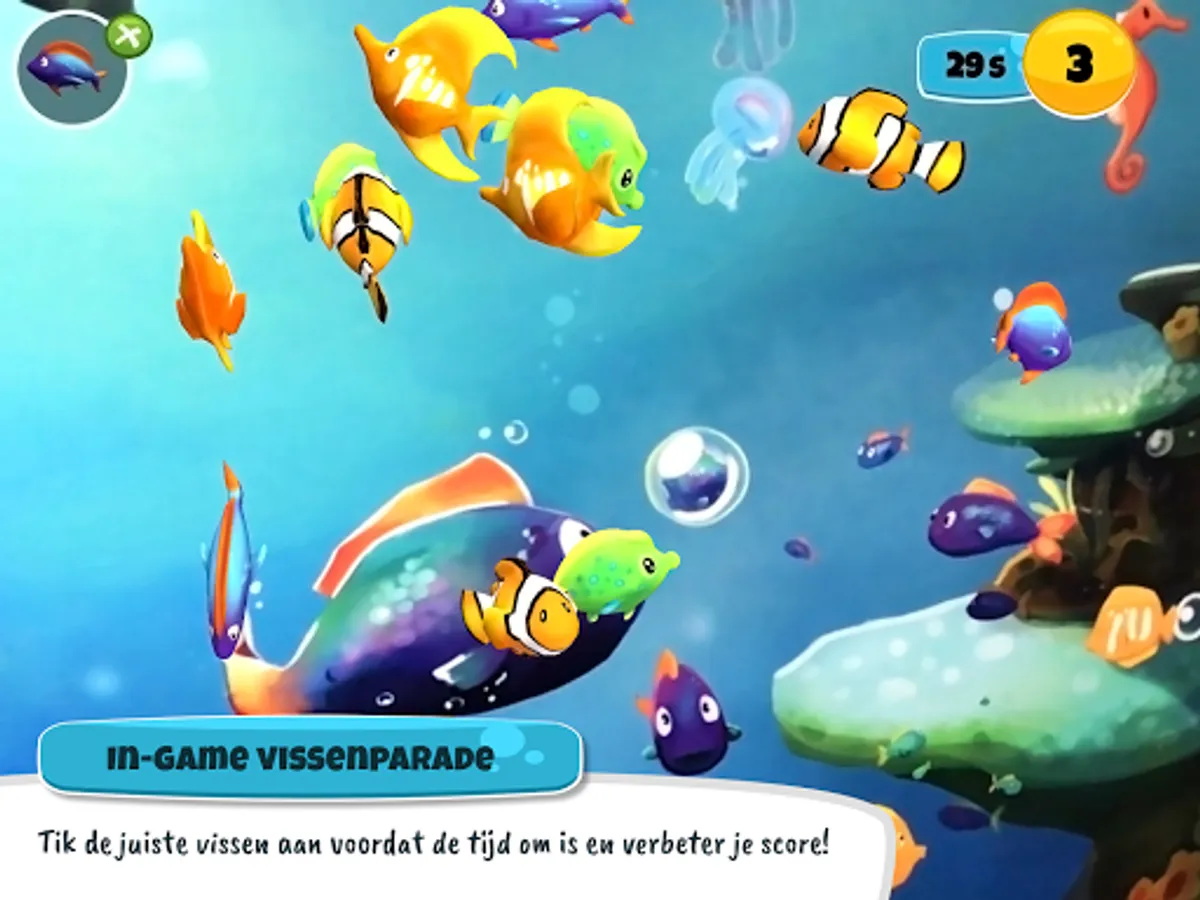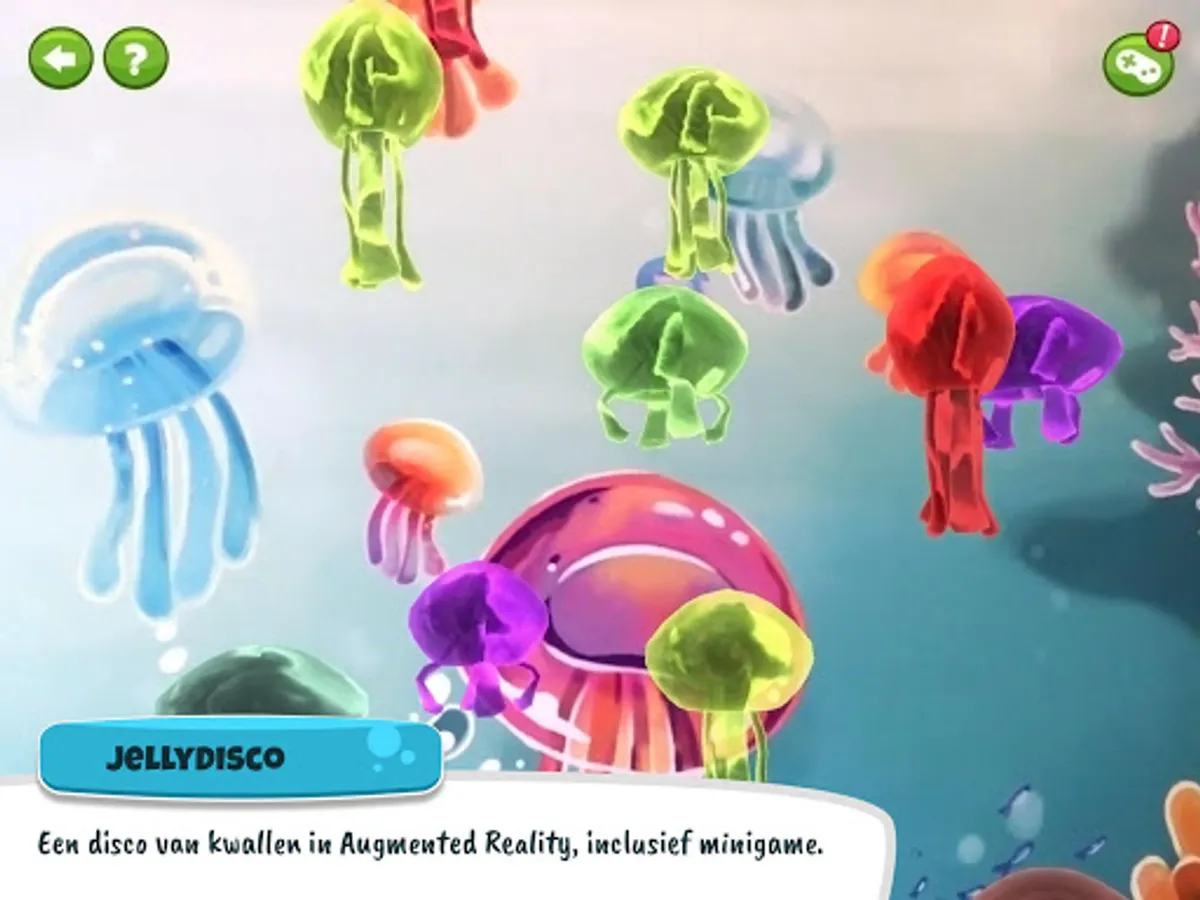 The AR part of the App works with the mobile camera. By pointing the camera at the wall, the AR is activated, you can see the underwater world come to life and you can play the mini games.