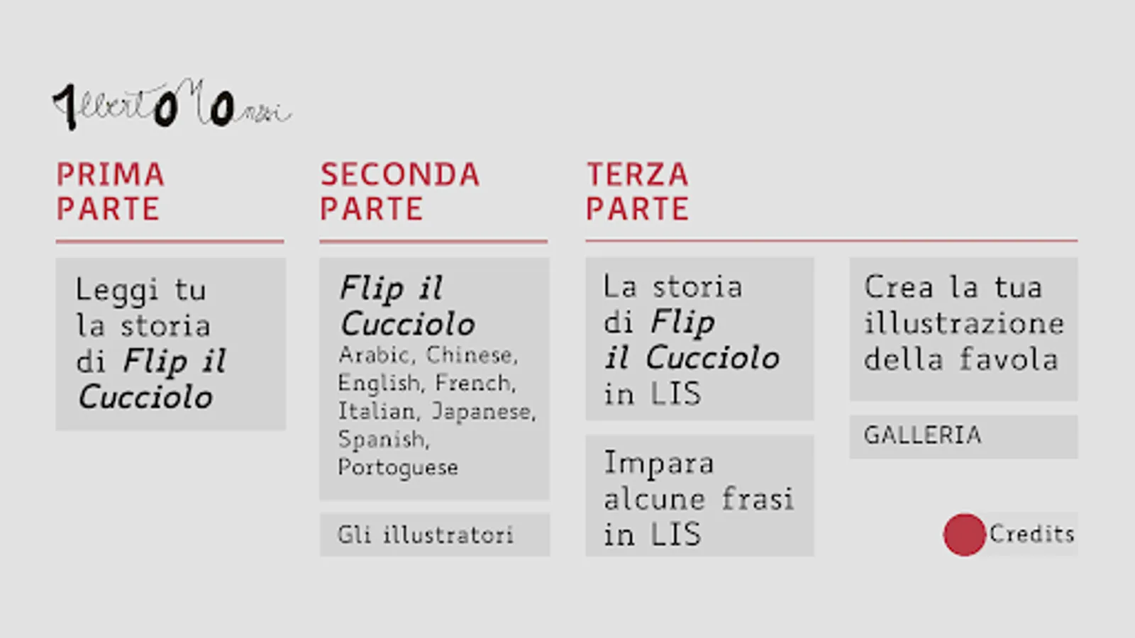 Discover the story of Flip the puppy in his various versions. Explore Part 1 and interact with amazing animations. Read Part 2 to reveal beautiful illustrations. Venture into Part 3 to discover the story in LIS and to bring your creations to life.