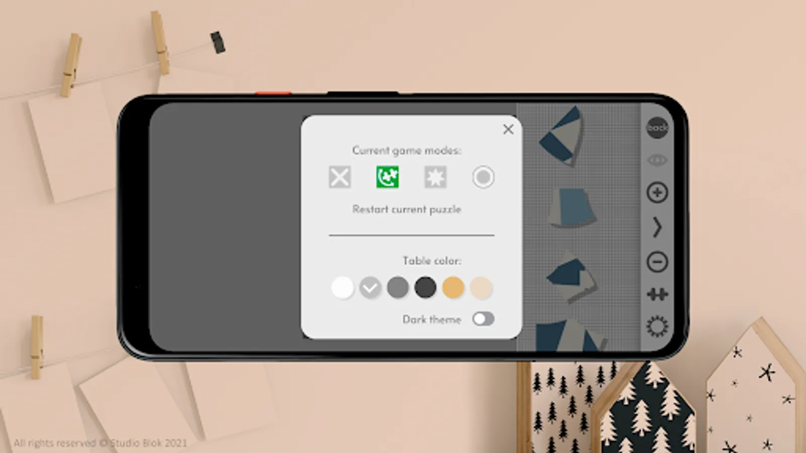 ● arrange jigsaw puzzles on a background image or without this hint, basing on your memory; in every moment you can remind yourself of a picture for three seconds – just press an eye button