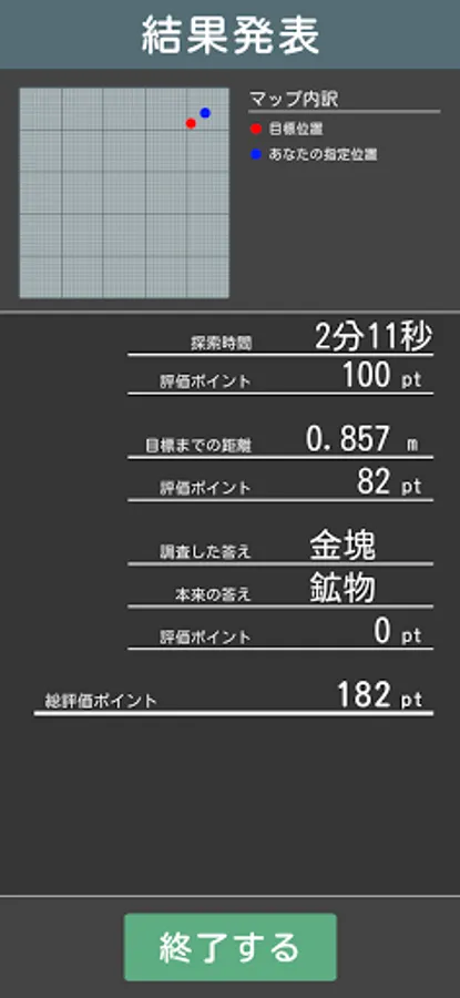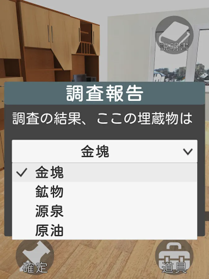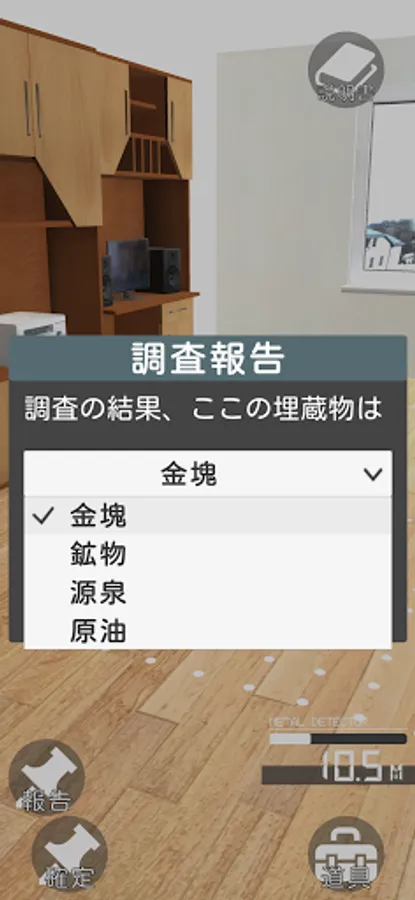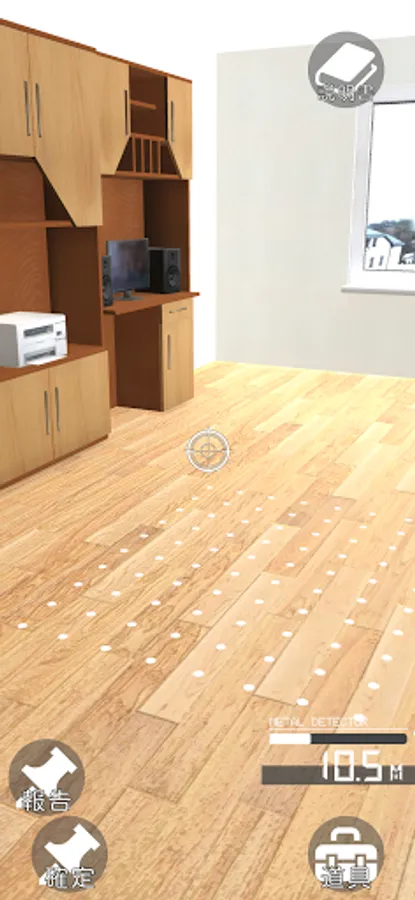 The purpose of this game is to find the specified resources and minerals in the AR space using a metal detector or radio wave detector.