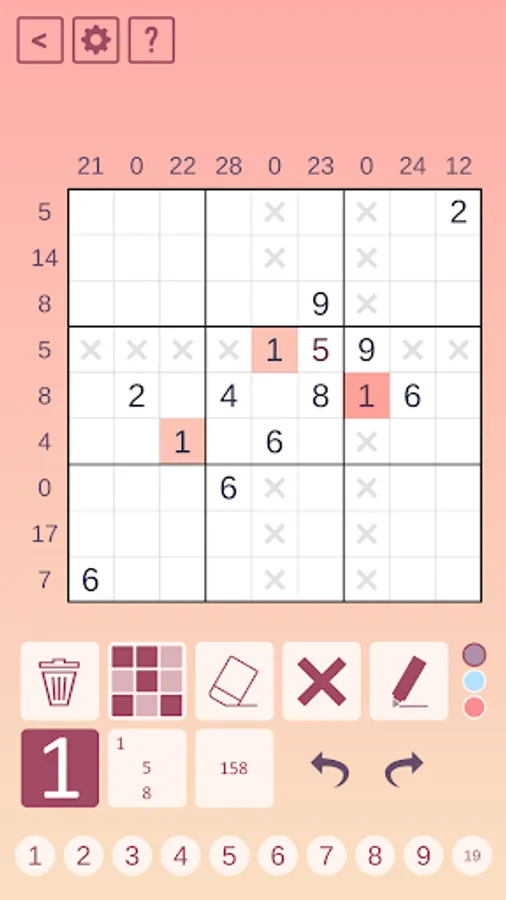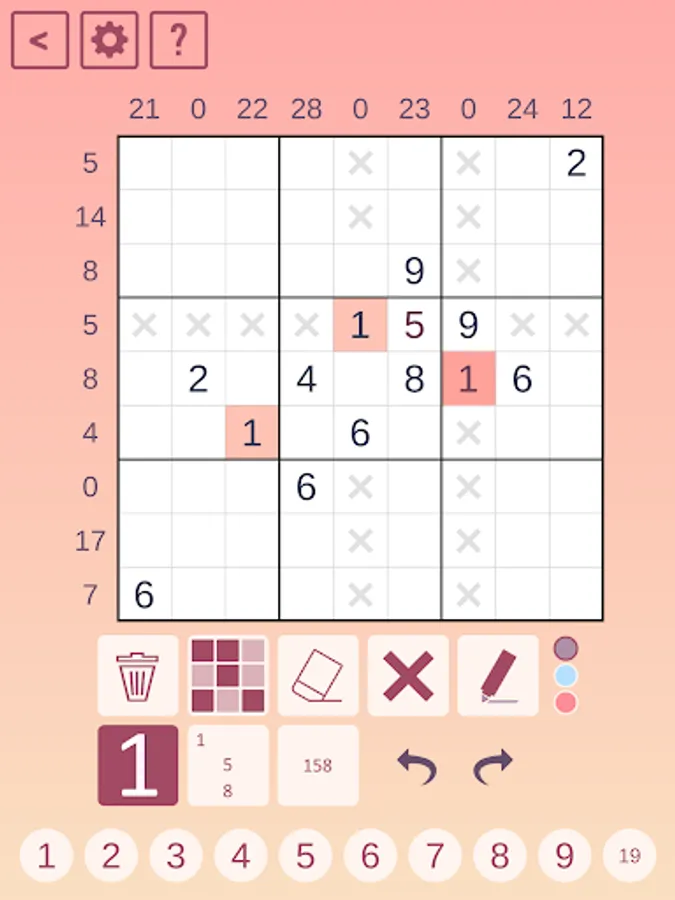 In Sandwich Sudoku, the puzzle is presented with extra numbers outside the grid next to each row and column. These numbers indicate the SUM of cells sandwiched between the 1 and the 9 in that row/column. The logic required to solve the puzzles will appeal to anyone who enjoys normal sudoku and a bit of basic maths. Each puzzle here has been lovingly hand-crafted by Mark Goodliffe and Simon Anthony, the hosts of Cracking The Cryptic. They've even included their own hints on each puzzle to help if you get stuck. Mark and Simon have both represented the UK many times in the World Sudoku Championship.