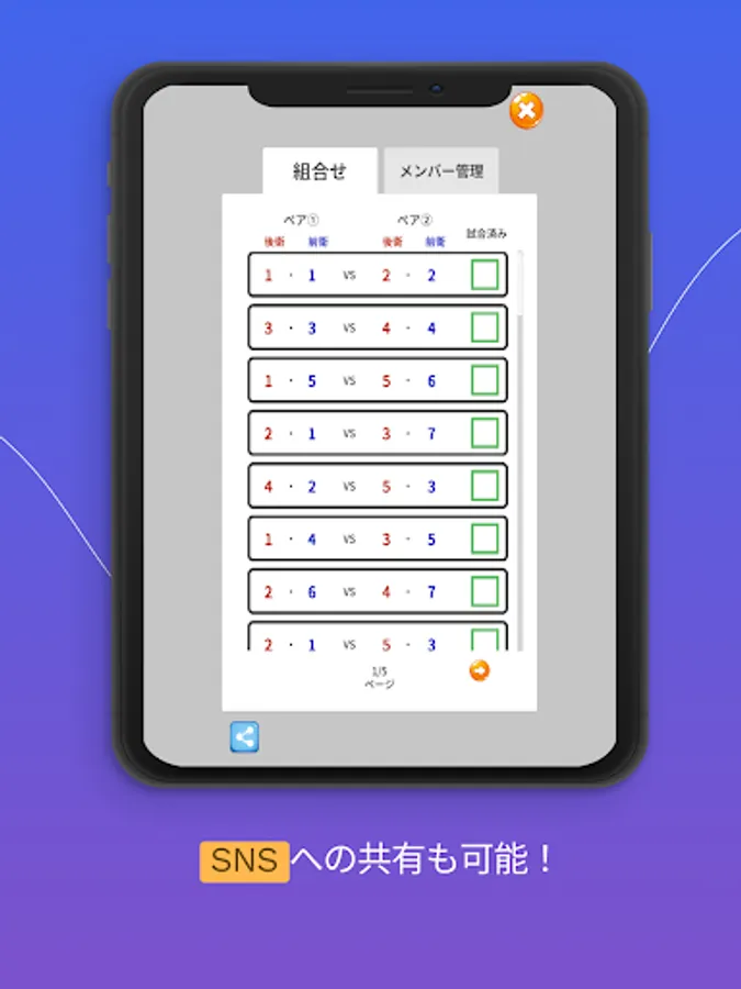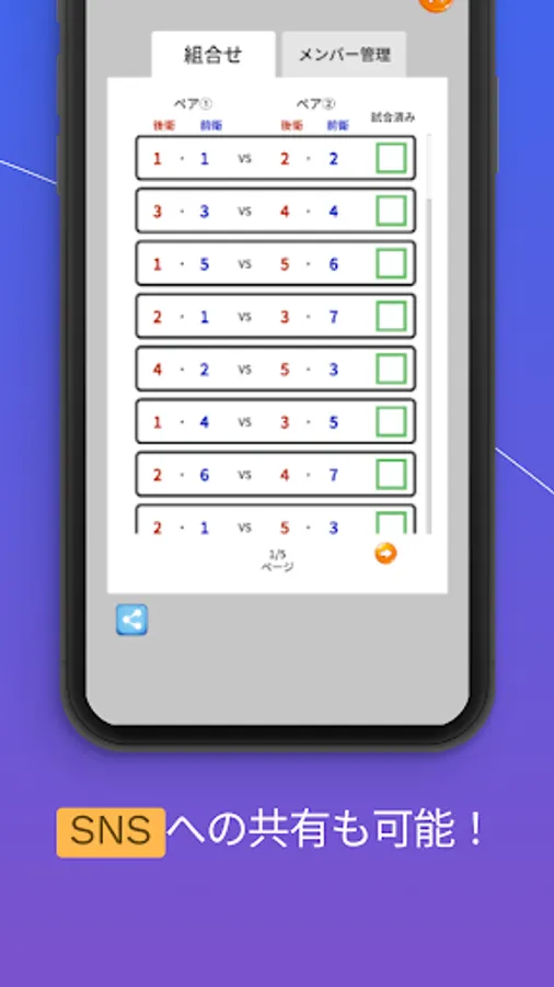 Combinations can be shared on SNS, and the order of matches can be shared with circle members and club members.