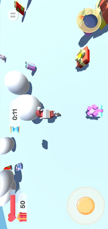 Santa gets points by avoiding the snowballs rolling at him and eating gifts falling from the sky. When all of the limited stamina is consumed, Santa dies, and in the end, you can check the score.