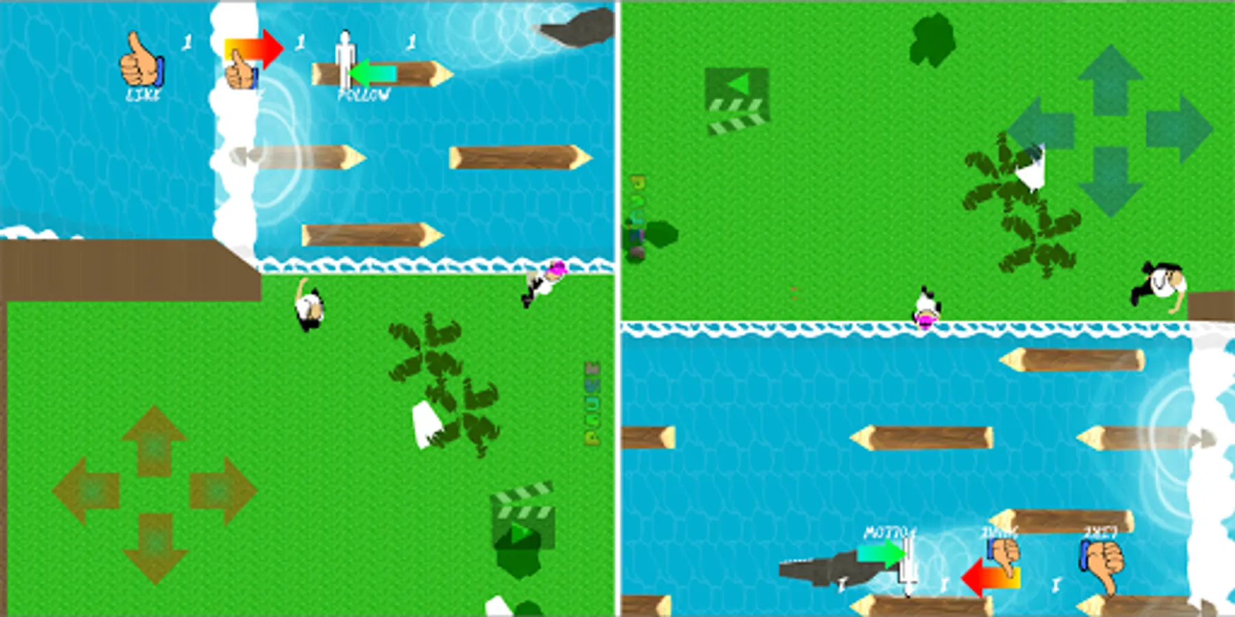 Blogger: Based on the concept of Frogger, Play as one of two bloggers setting out to be the first person in the world to enter the new Pineapple store. Terrence Blogson, a 39 year old neckbeard that lives in his mothers basement, With an extensive vocabulary he collects tech devices to blog about. G4m3r G3r1 is only fluent in 1337 5P34K, she eats, sleeps and showers with her gaming headset on and believes she is unique because of her pink hair. As you play, the things you do will be added to a unique blog if you can make it home.