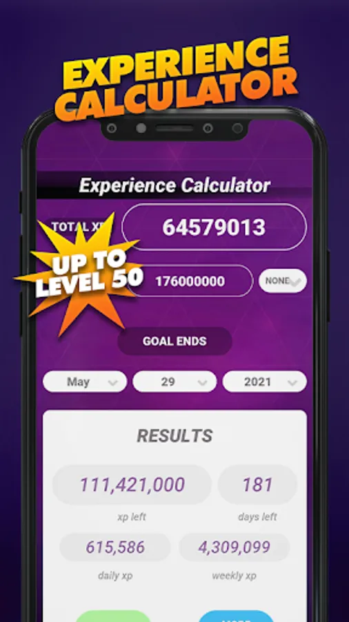 - Experience Calculator: Add your goal experience number and deadline; we will calculate how much experience you will need to earn daily in order to complete your goal.