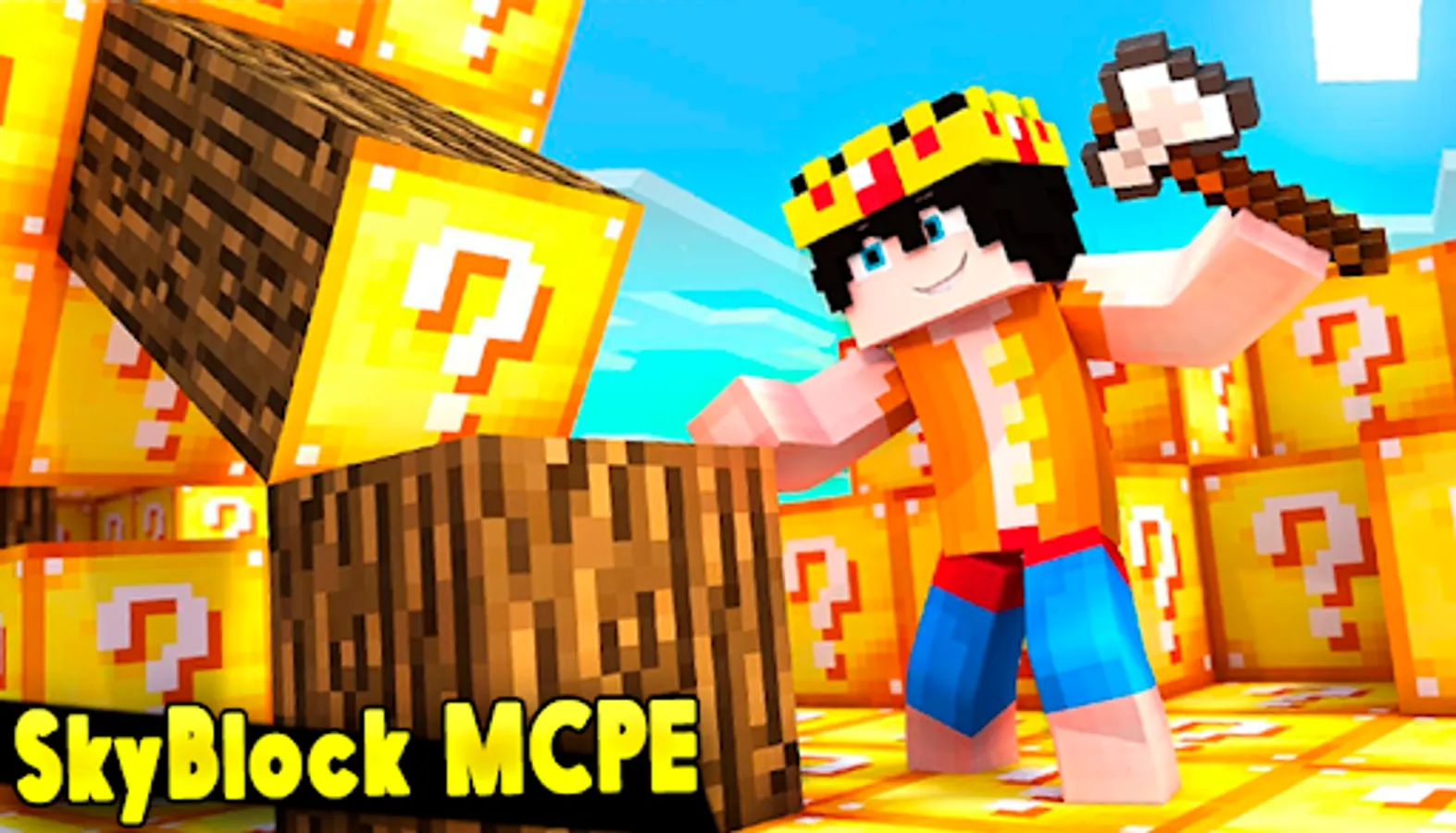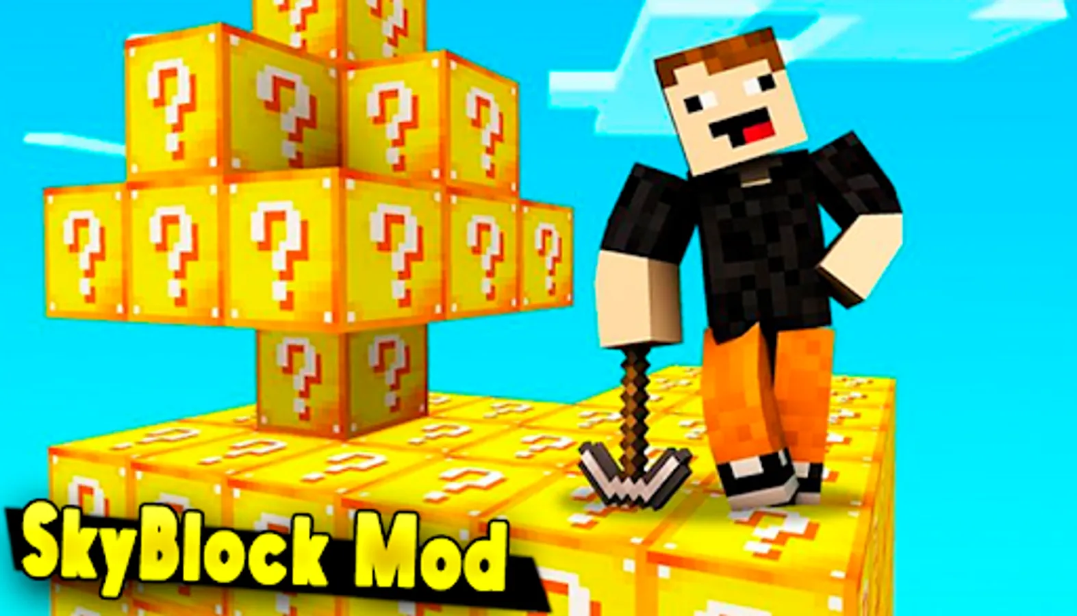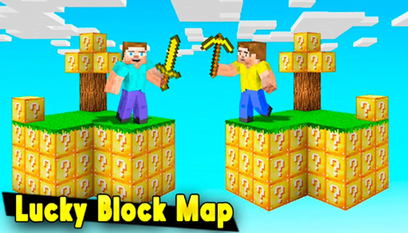 Our application for minecraft free is very similar to the popular SkyBlock survival map for minecraft, but now it all depends on your luck. After installing this pixel mod by going into minecraft, you can see an island with a lucky tree in the middle, there will be no chests and ores on the island, everything will be decided by lucky blocks that are there px xd. There will be 4 different mincraft territories floating in the air, you appear on one of them where the lucky block is located, the essence of the mod is to reach the neighboring island and after you get all the id items in addons skinseed, craft or find a portal and kill a dragon.