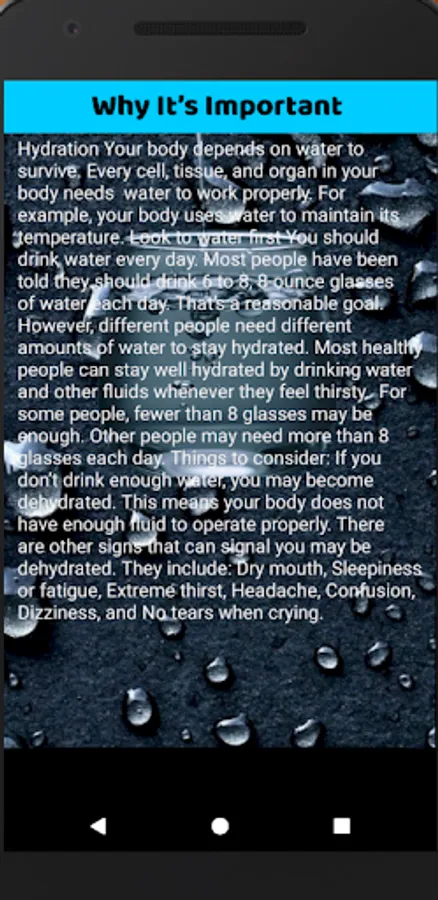 This application will inform you a lot of information about water, and benefits of drinking water for your health.