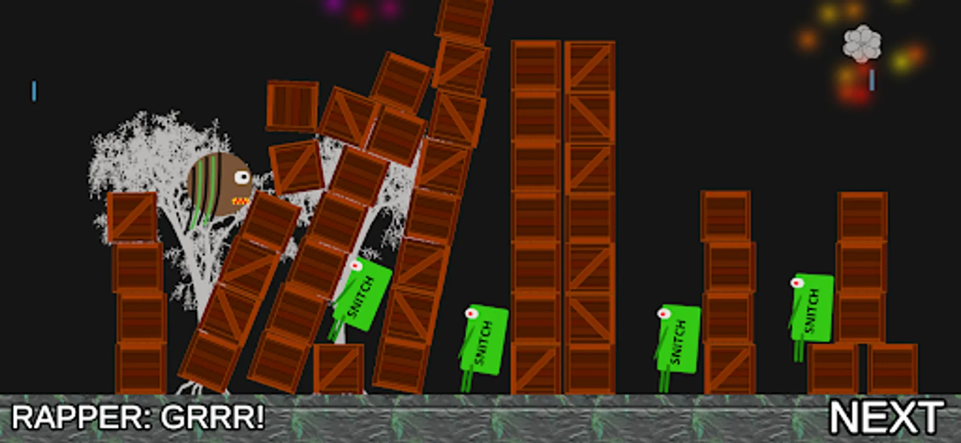 Sling the mad rapper all the way through levels, smashing, ramping and flying through snitches that's out to get the mad rapper.