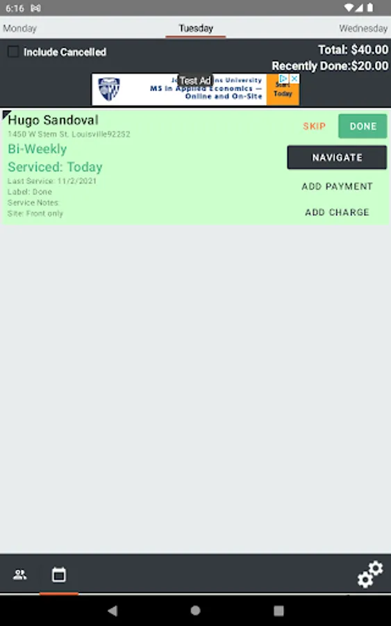 Routes: Easily view your weekly agenda based on the day of the week. Know how many clients and services you have for the day.