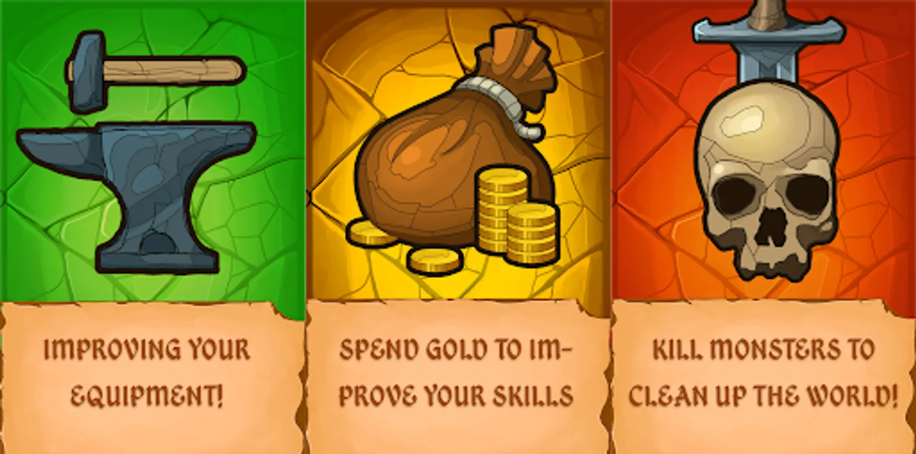 The game is very simple to play. Drag and drop the same items on top of each other to get a higher level item. Compare new items with the ones you already have and collect the best equipment combinations.