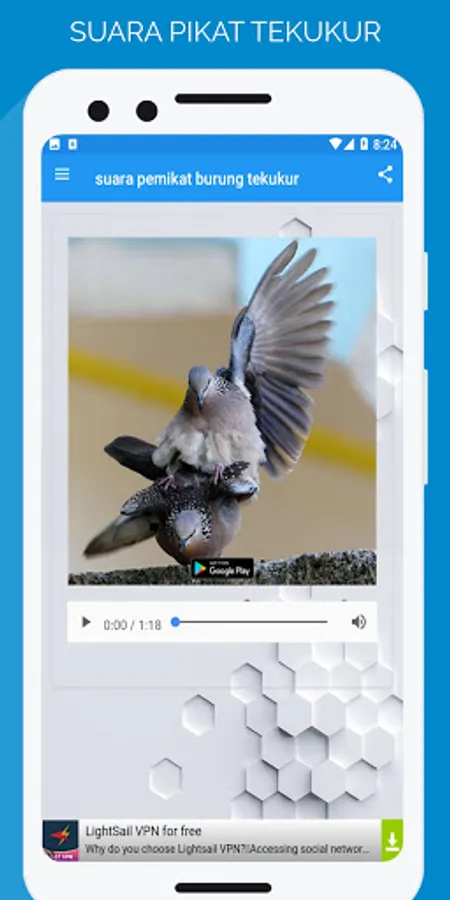 The turtledove lure sound application is an application that contains mp3 sounds to lure turtledoves in the wild can also be used to master your turtledoves at home so that you are diligent in chirping the np3 sound in the application has been chosen so it is very suitable for my friends who like turtledove sound mp3 in the application contains the sound of one yoke of one yoke of five