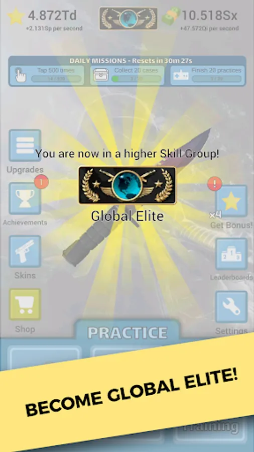RANKING UP IS EASY IN CS GO! All you have to do is tap! You can, of course, rank up even faster if you are good at mini games, but essentially the only thing between you and being global elite is TAPS! It doesn’t matter if you’re silver. Counter Clicker doesn’t have room for frustration!
