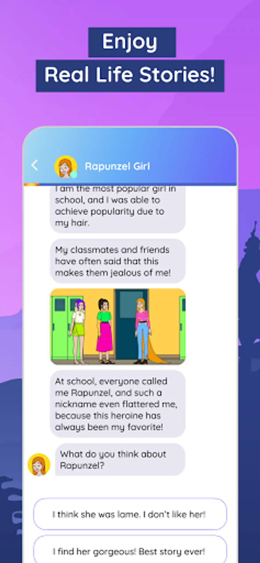 You can choose any of the chat possibilities full of surprises and talk like texting on your mobile or you can witness different adventures of different lives in the stories.