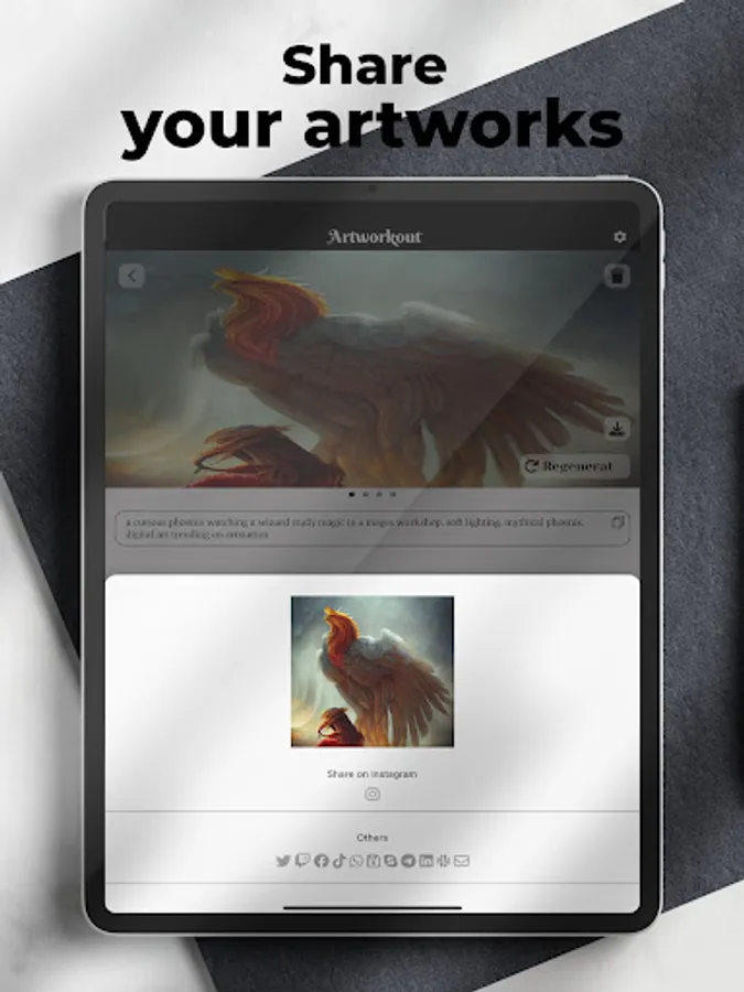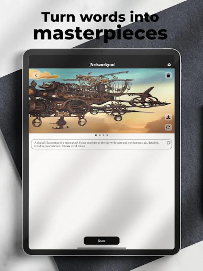 "AI Art Generator: Artworkout" is the AI-powered app for creating images from words. From your imagination, create thousands of stunningly beautiful images in various art styles. AI Art Generator: Artworkout is a simple, fast, and easy way to make your words into masterpieces!