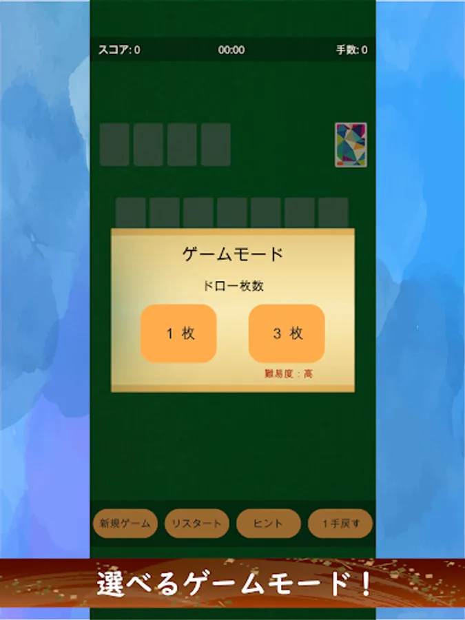 - You can choose the difficulty level (draw 1 card, draw 3 cards)