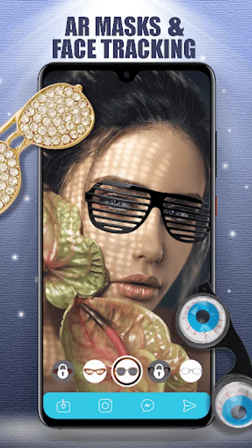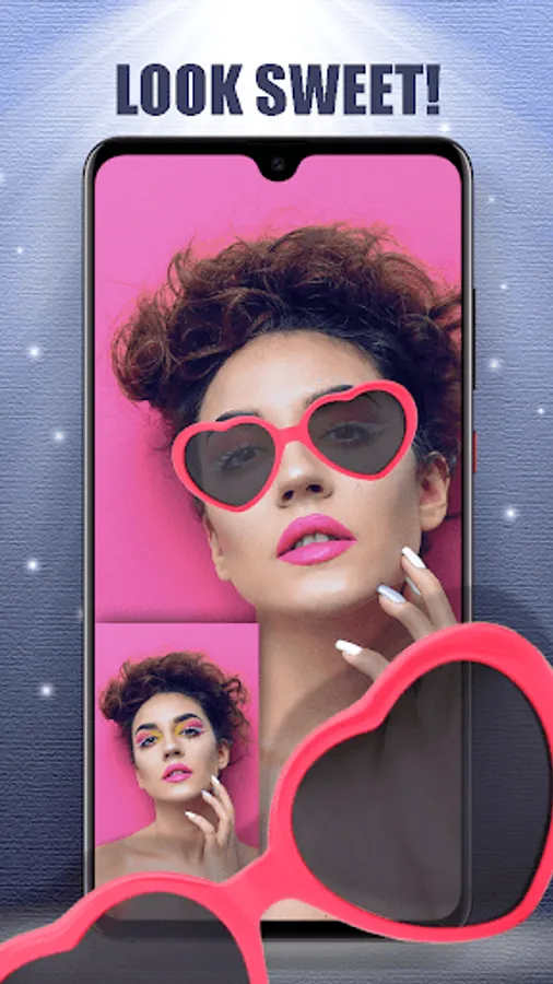 Sunglasses sticker camera allows you to directly add any fashion accessory you like!