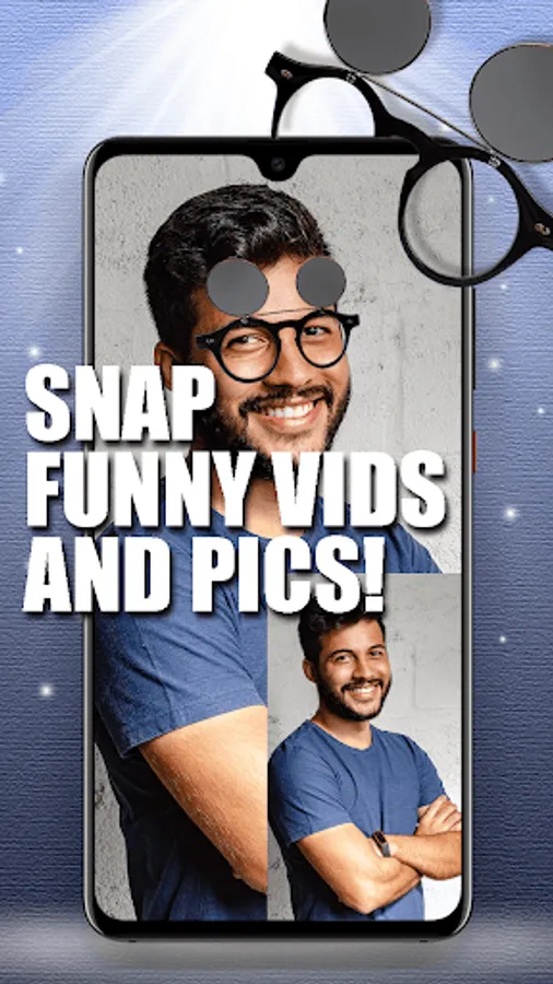 Use this app as an eyeglasses photo maker or as a sunglasses video editor! Explore all filter camera stickers and capture your best live stickers camera selfie! Be creative with live camera effects from this photo editor with goggles! Apply eye glasses stickers to your face! This is a snap camera with glasses of your dreams! Put on cool glasses and strike a pose NOW!