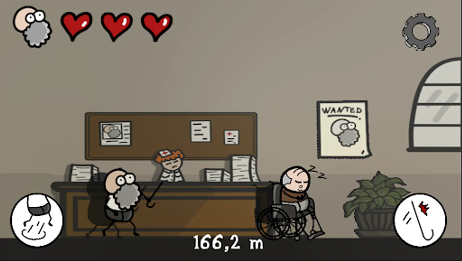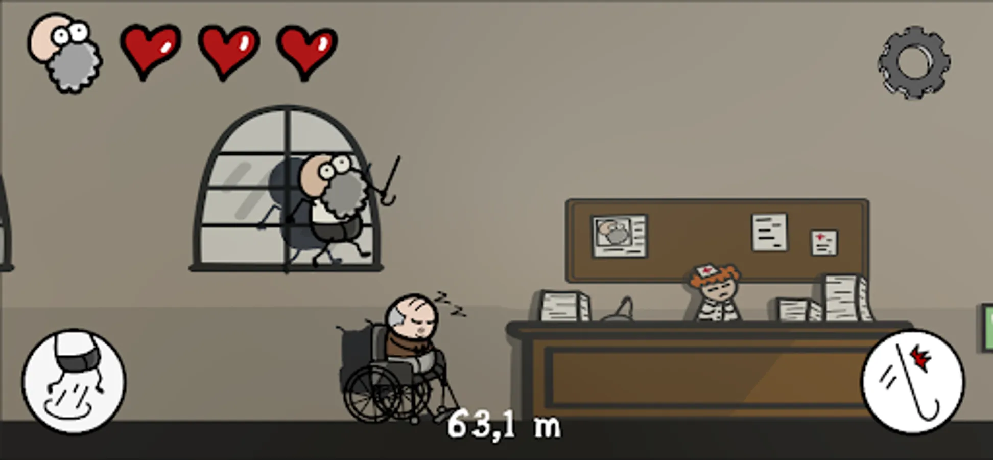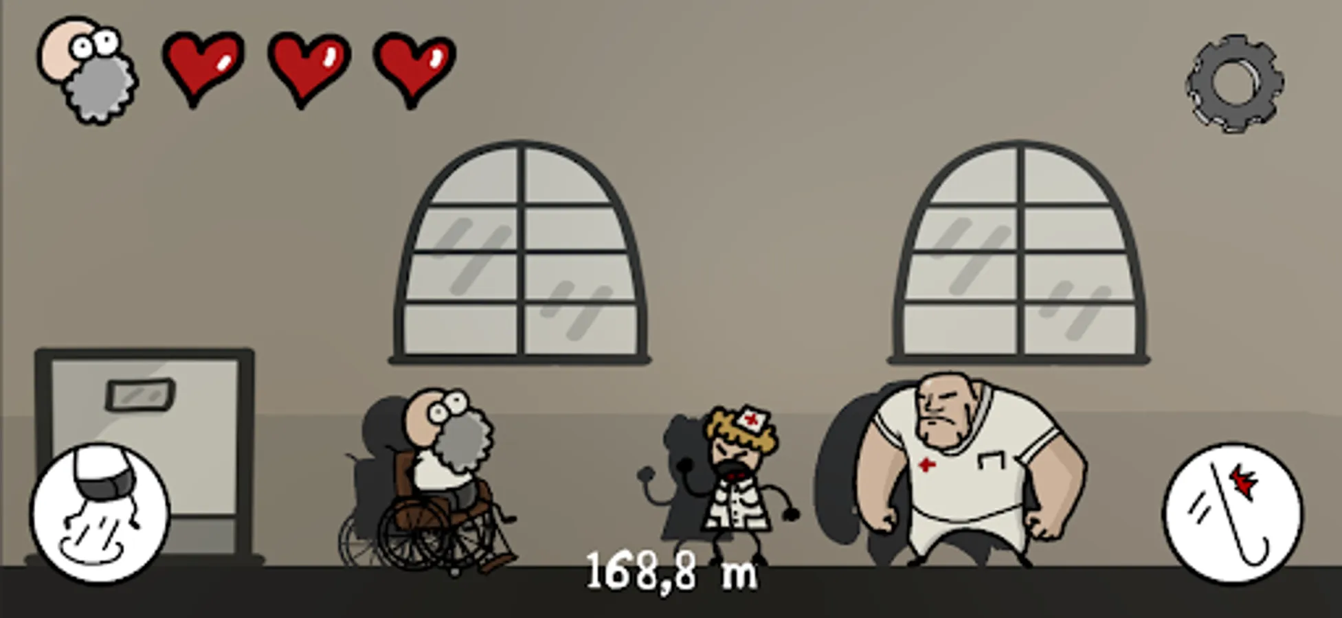 Gege’s Rush is an endless runner where Gege, an old man, tries to escape from his retirement home. Help him by hitting the nurses and blowing him over the beds and wheelchairs that block his way!