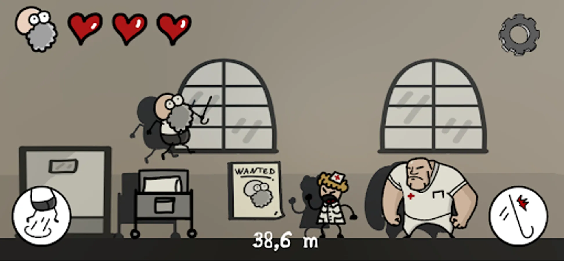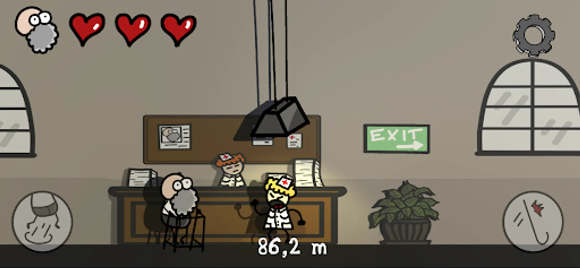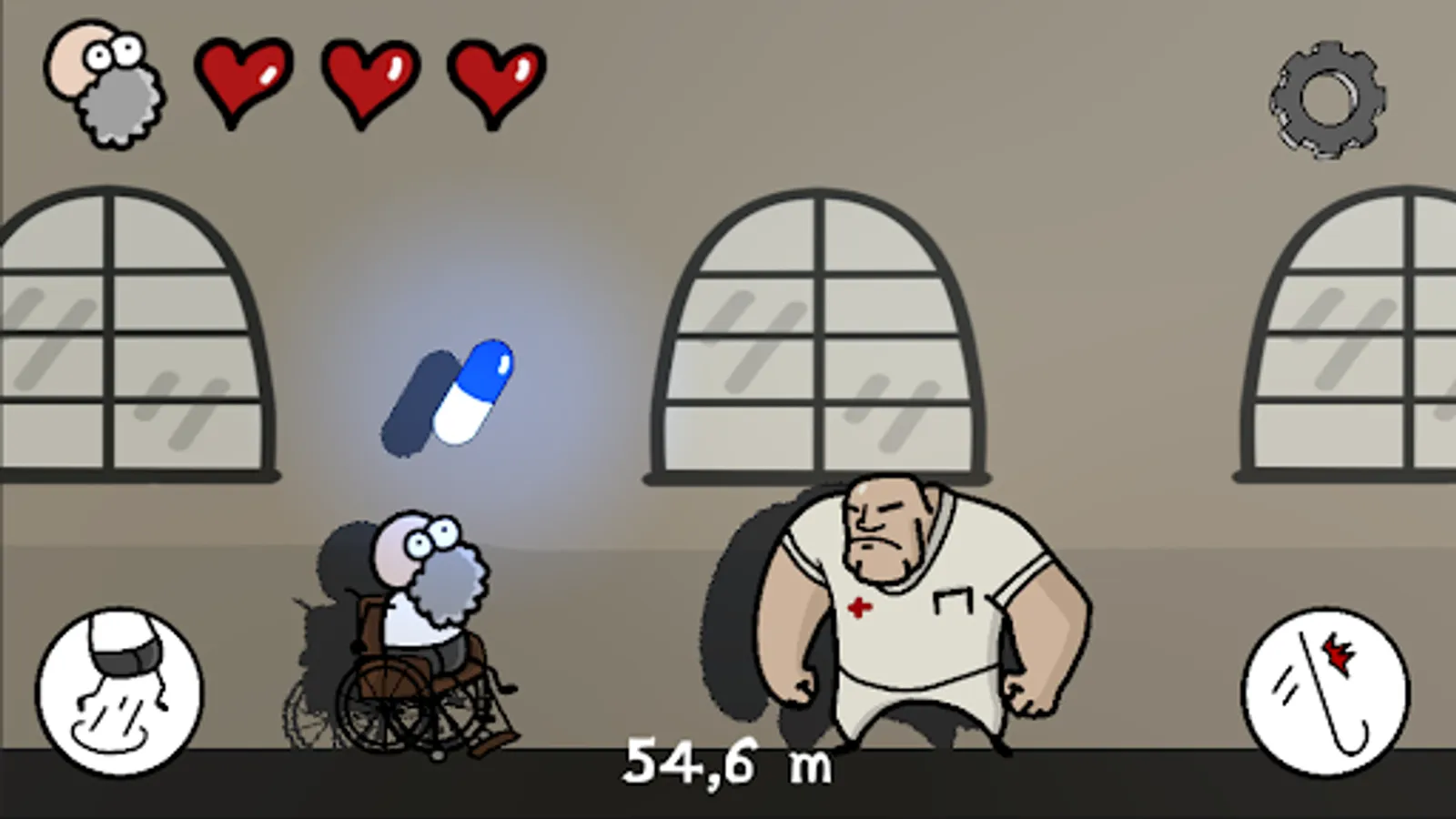 Gege’s Rush is an endless runner where Gege, an old man, tries to escape from his retirement home. Help him by hitting the nurses and blowing him over the beds and wheelchairs that block his way!