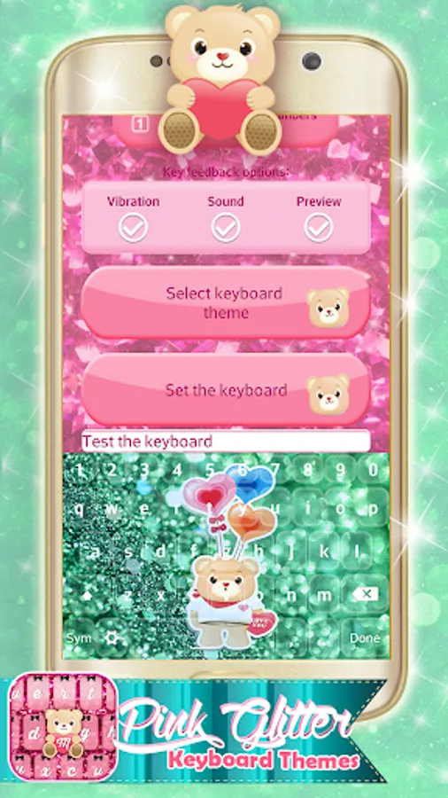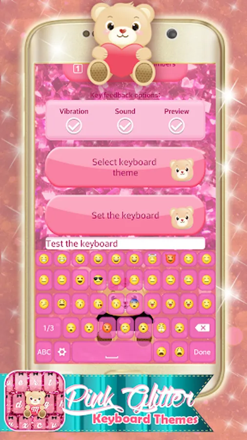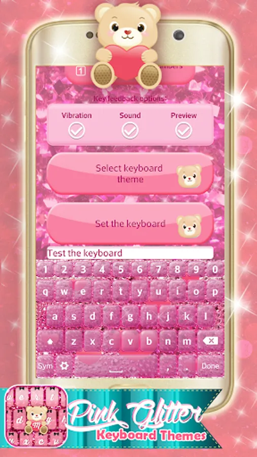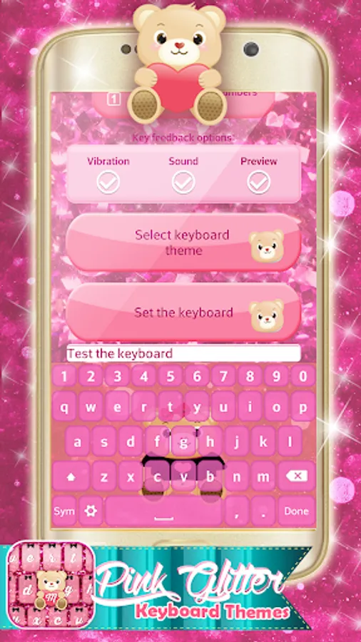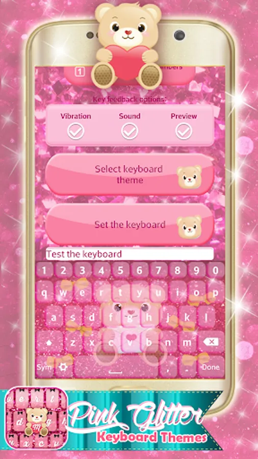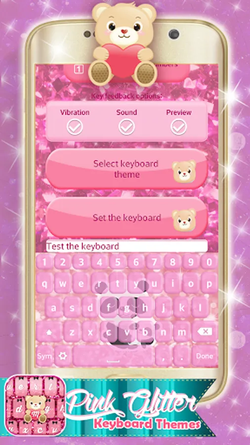 With 🐻Pink Glitter Keyboard Themes🐻 app free of charge you will change your typing keyboard color and, at the same time, you will replace your old, boring keyboard