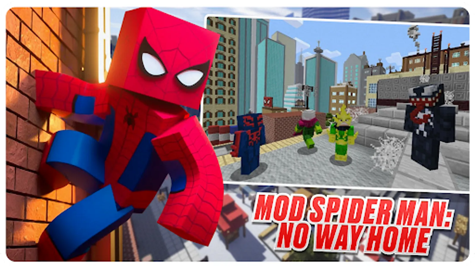 Mod Spider Man: No Way Home will allow you to combine two legendary universes into one virtual world of MCPE Bedrock blocks. 🌏 Fans of Marvel will definitely like our Spider Man hero Minecraft Mod. Using the addon, the game will be filled with many characters. There will appear flexible Venom, strong doctor Octopus 🐙, charming Garfield and of course the main skin - Tom as Spider. Spider Man mods Minecraft Pocket Edition contain not only SpiderMan skins for Minecraft, but also a lot of interesting items, abilities that will help bravely play against enemies.