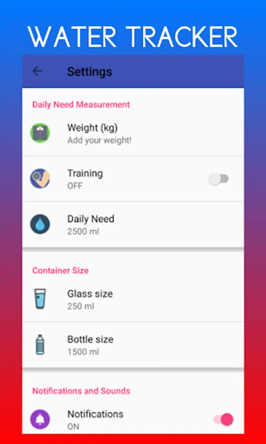 You only need to select a gender and enter a weight, it will help you calculate how much water should you drink per day. You can also track water history, reach your daily goal to open the respective achievements, and many other useful functions. Waterify will help you build a good habit with healthy body.