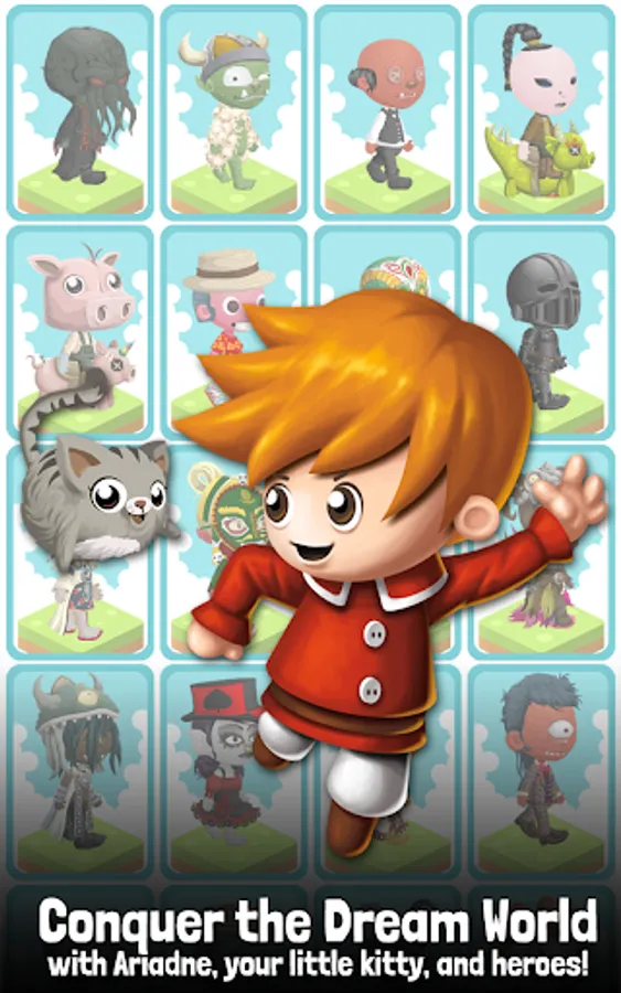 Conquer the Dream World with Ariadne, your little kitty, and heroes!