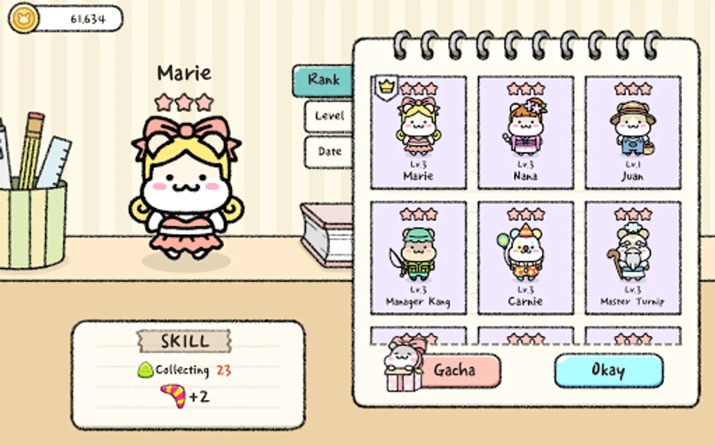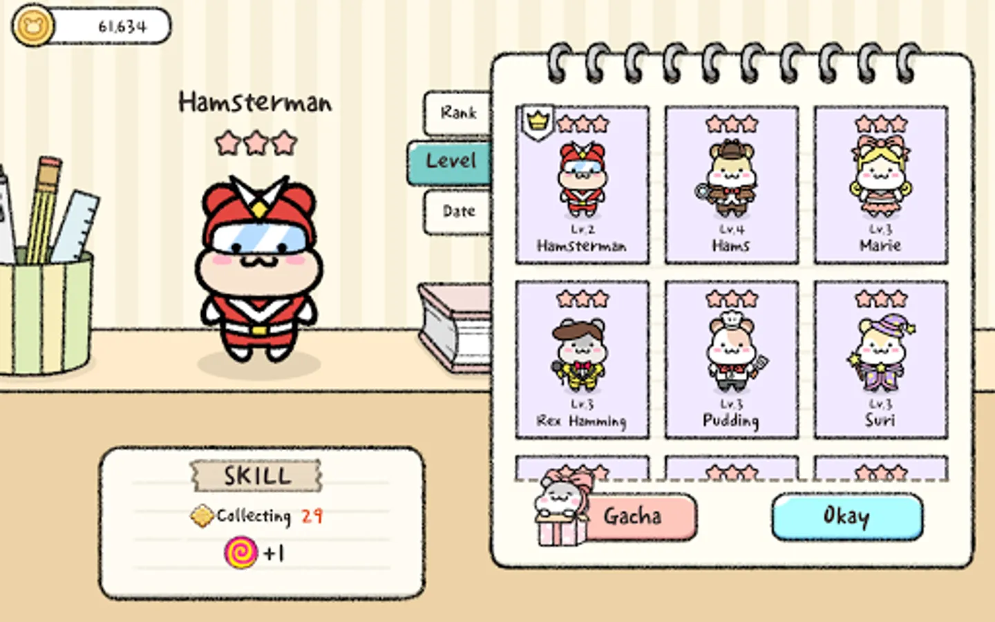 Decorate Hamster Town as you enjoy various episodes with your cute hamster friends.